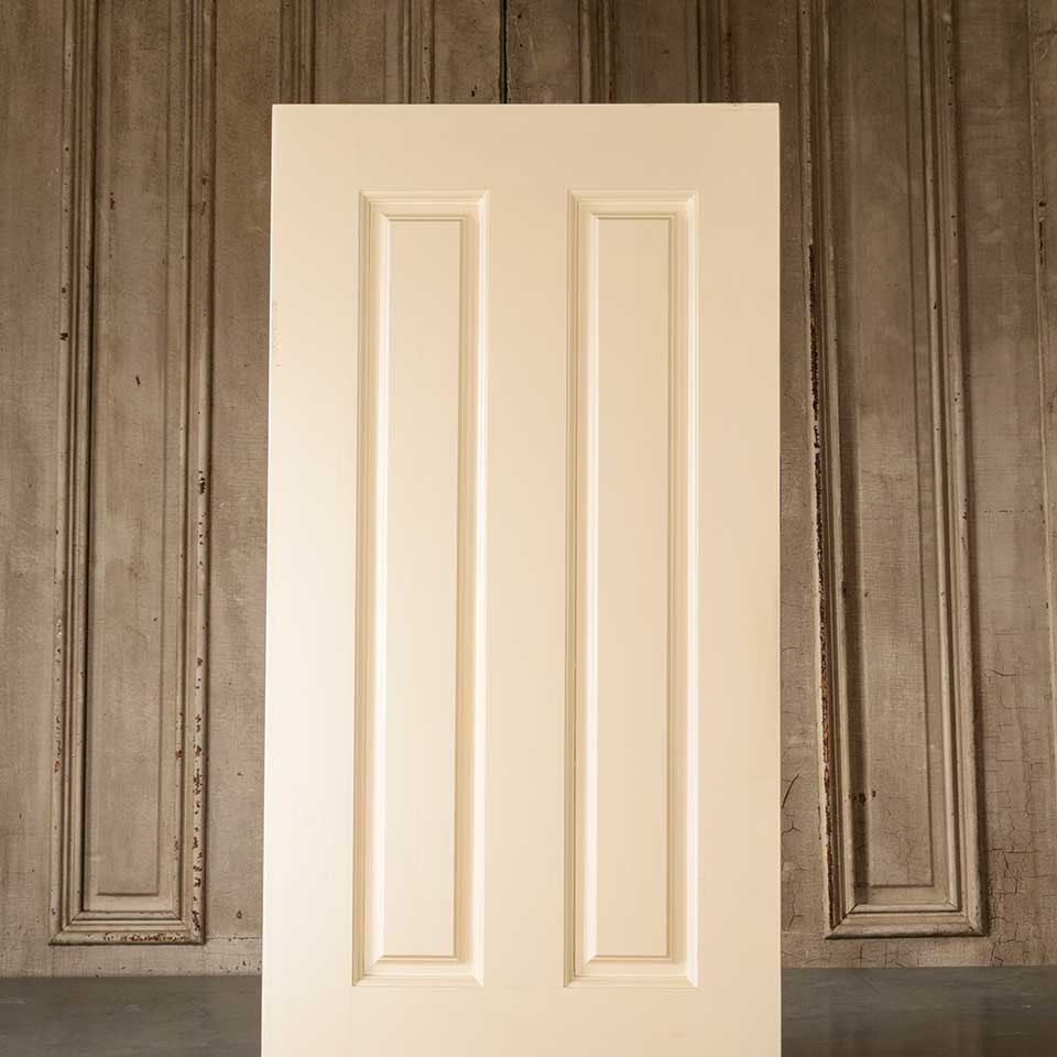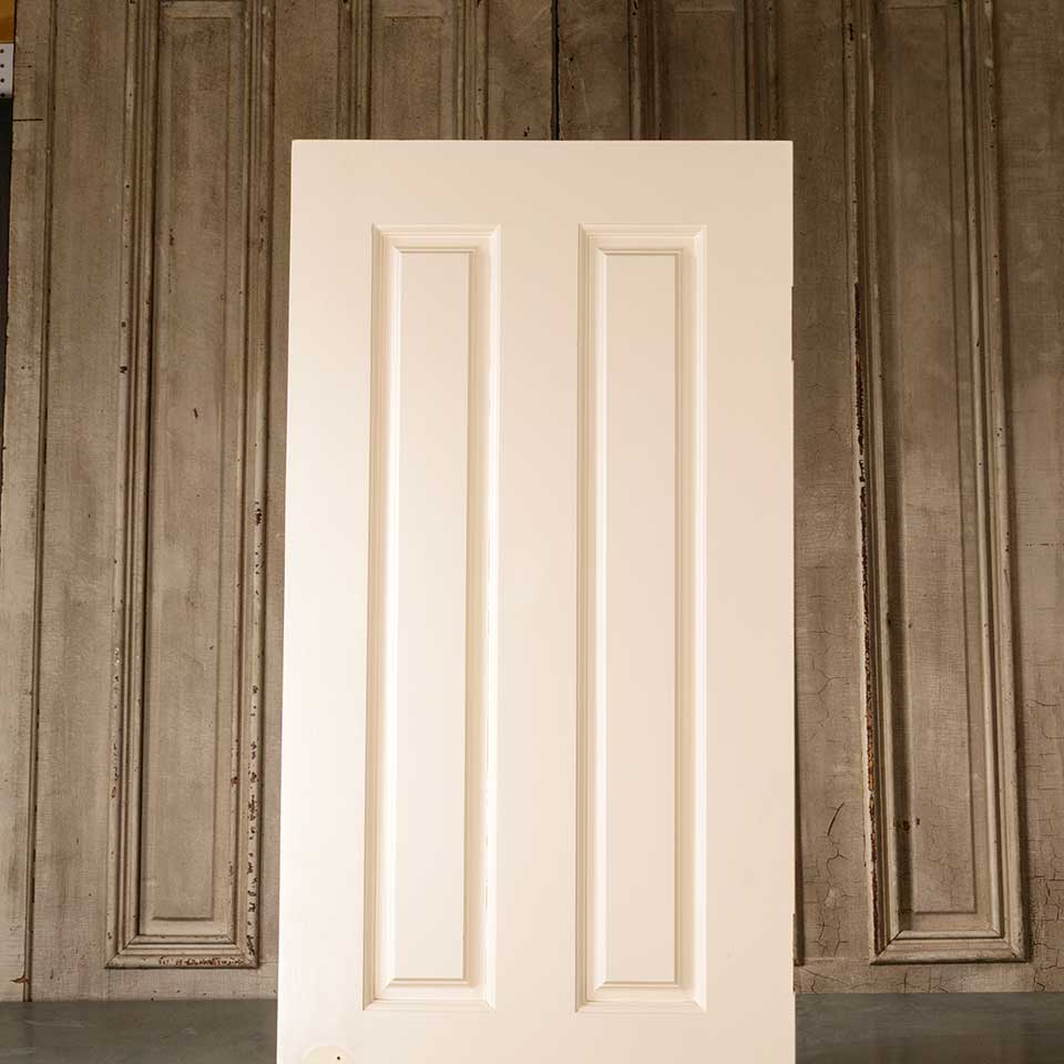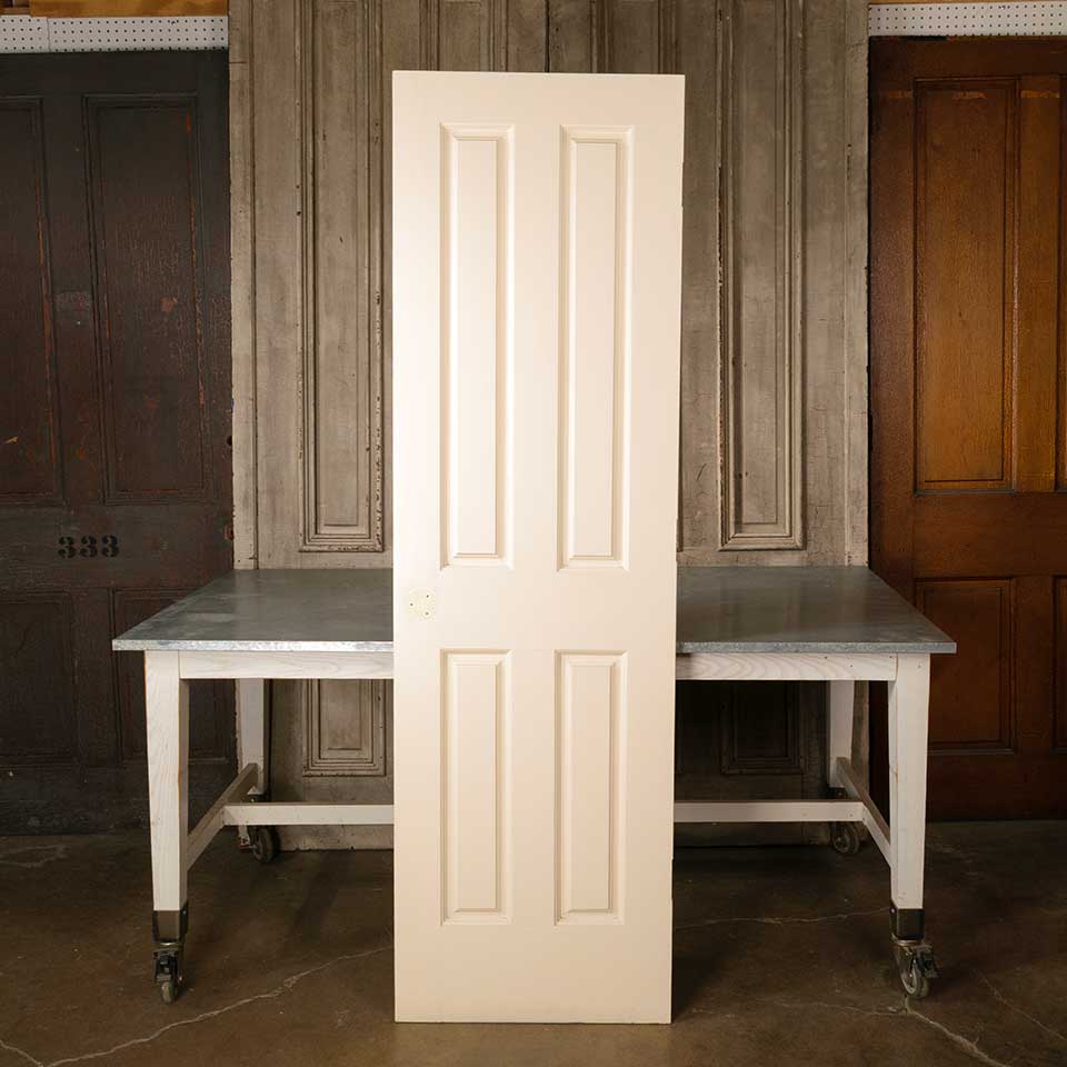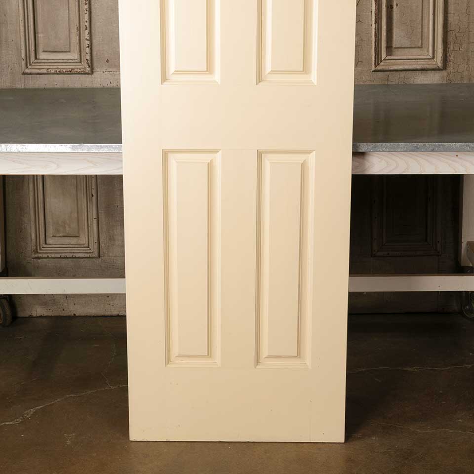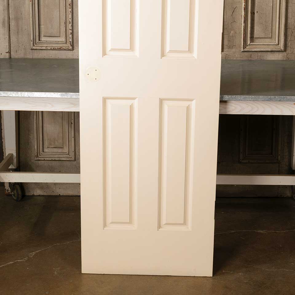 Architectural salvage four panel painted wood interior door measuring approx. 23 3/4" wide x 80" tall x 1 3/8" thick. This is not an antique door. See photos to evaluate condition.