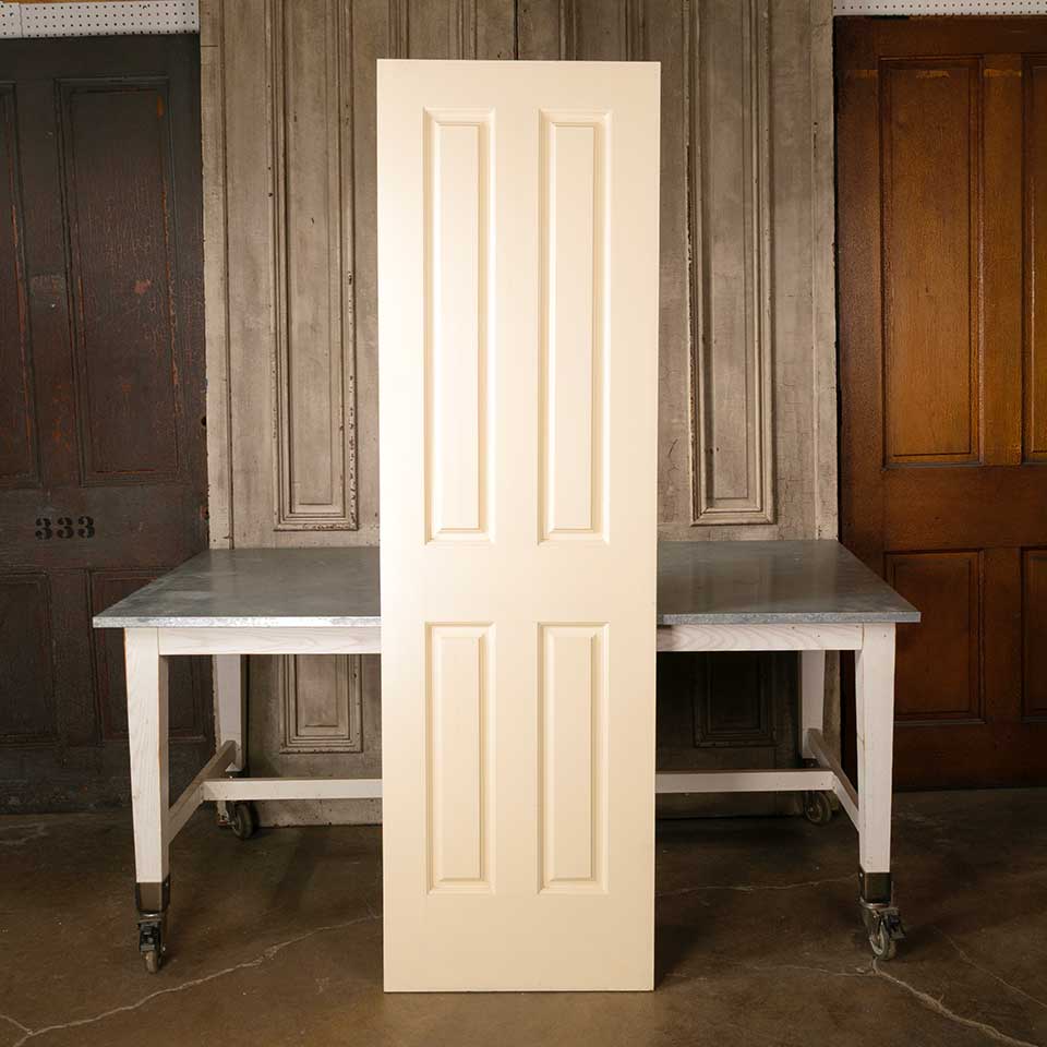 Architectural salvage four panel painted wood interior door measuring approx. 23 3/4" wide x 80" tall x 1 3/8" thick. This is not an antique door. See photos to evaluate condition.