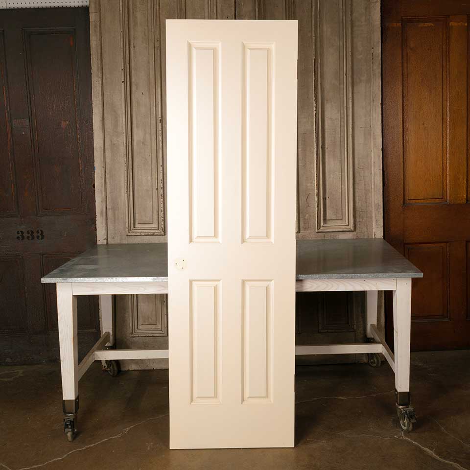 Architectural salvage four panel painted wood interior door measuring approx. 23 5/8" wide x 79 3/4" tall x 1 3/8" thick. This is not an antique door. See photos to evaluate condition.