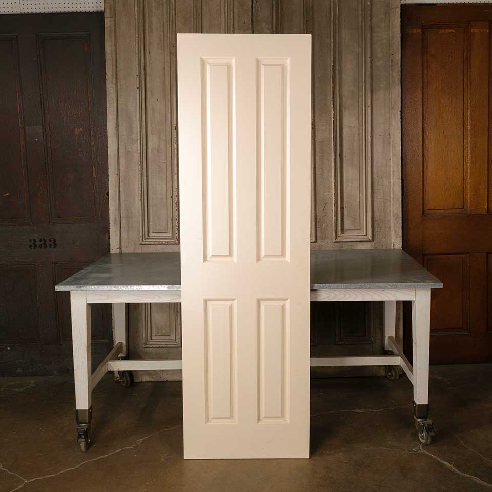 Architectural salvage four panel painted wood interior door measuring approx. 23 3/4" wide x 78" tall x 1 3/8" thick. This is not an antique door. See photos to evaluate condition.
