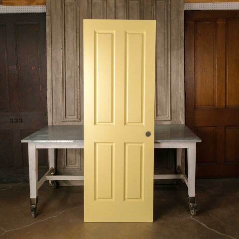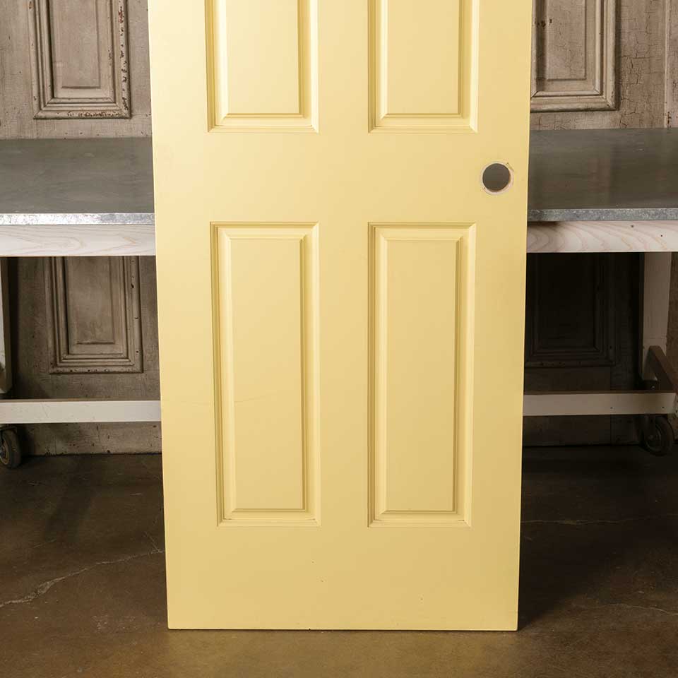 Architectural salvage four panel painted wood interior door with mirror measuring approx. 27 3/4" wide x 79 3/4" tall x 1 5/8" thick. This is not an antique door. See photos to evaluate condition.
