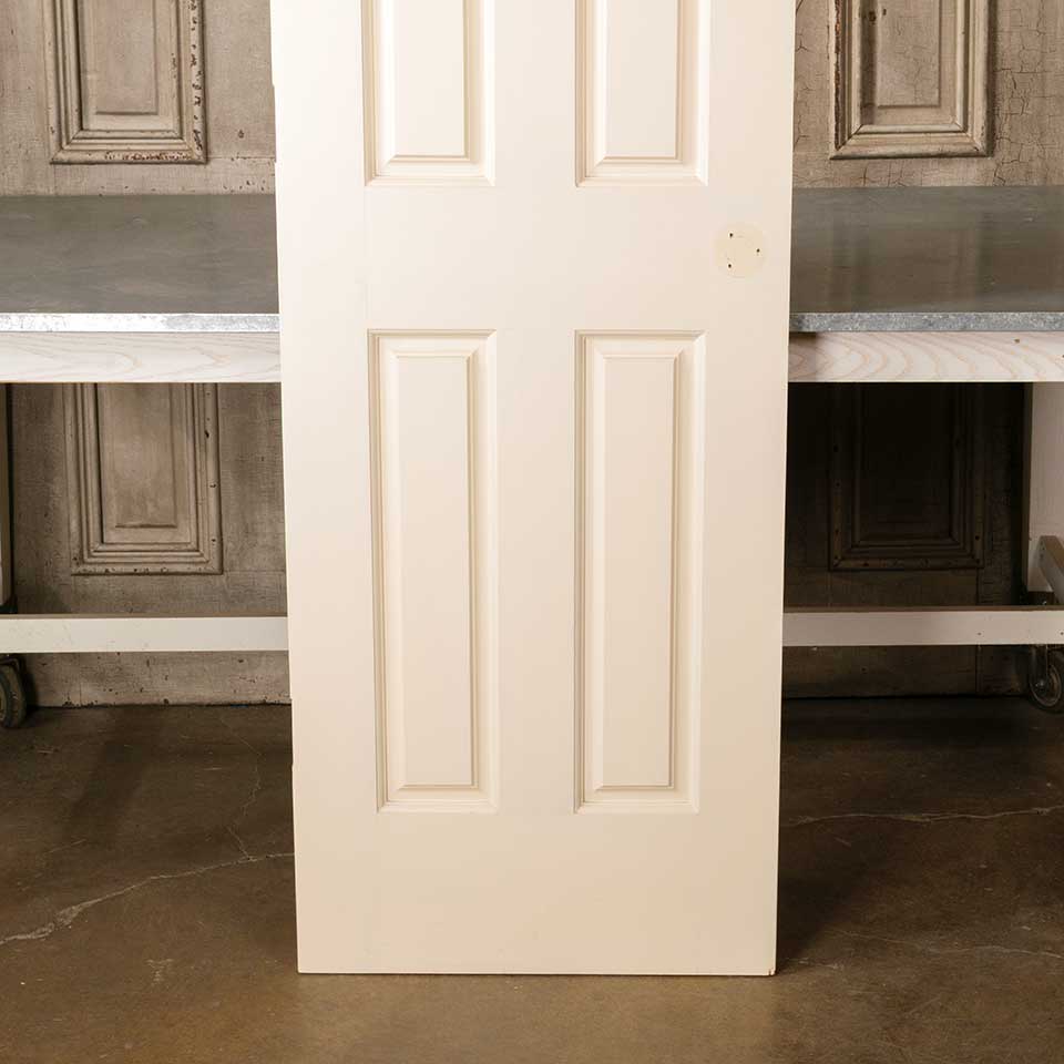 Architectural salvage four panel painted wood interior door measuring approx. 23 5/8" wide x 79 3/4" tall x 1 3/8" thick. This is not an antique door. See photos to evaluate condition.