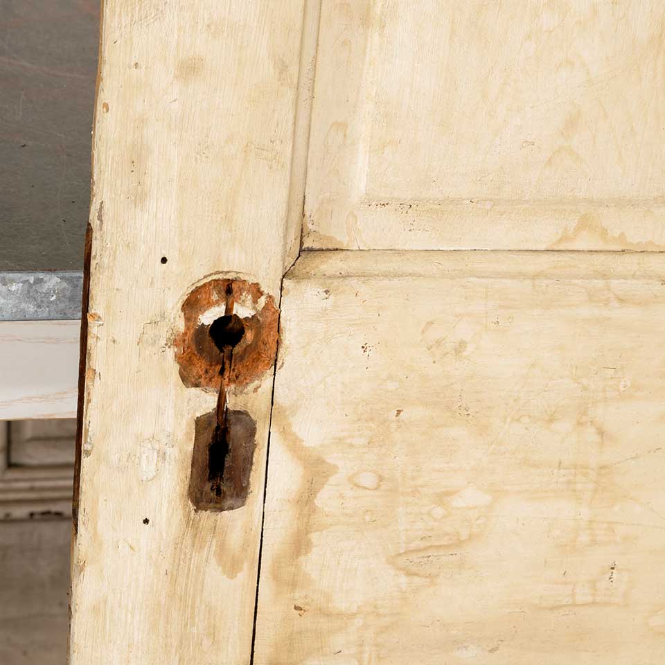 Architectural salvage antique four panel wood interior door measuring approx. 29 3/4" wide x 77 3/8" tall x 1 3/8" thick. See photos to evaluate condition.