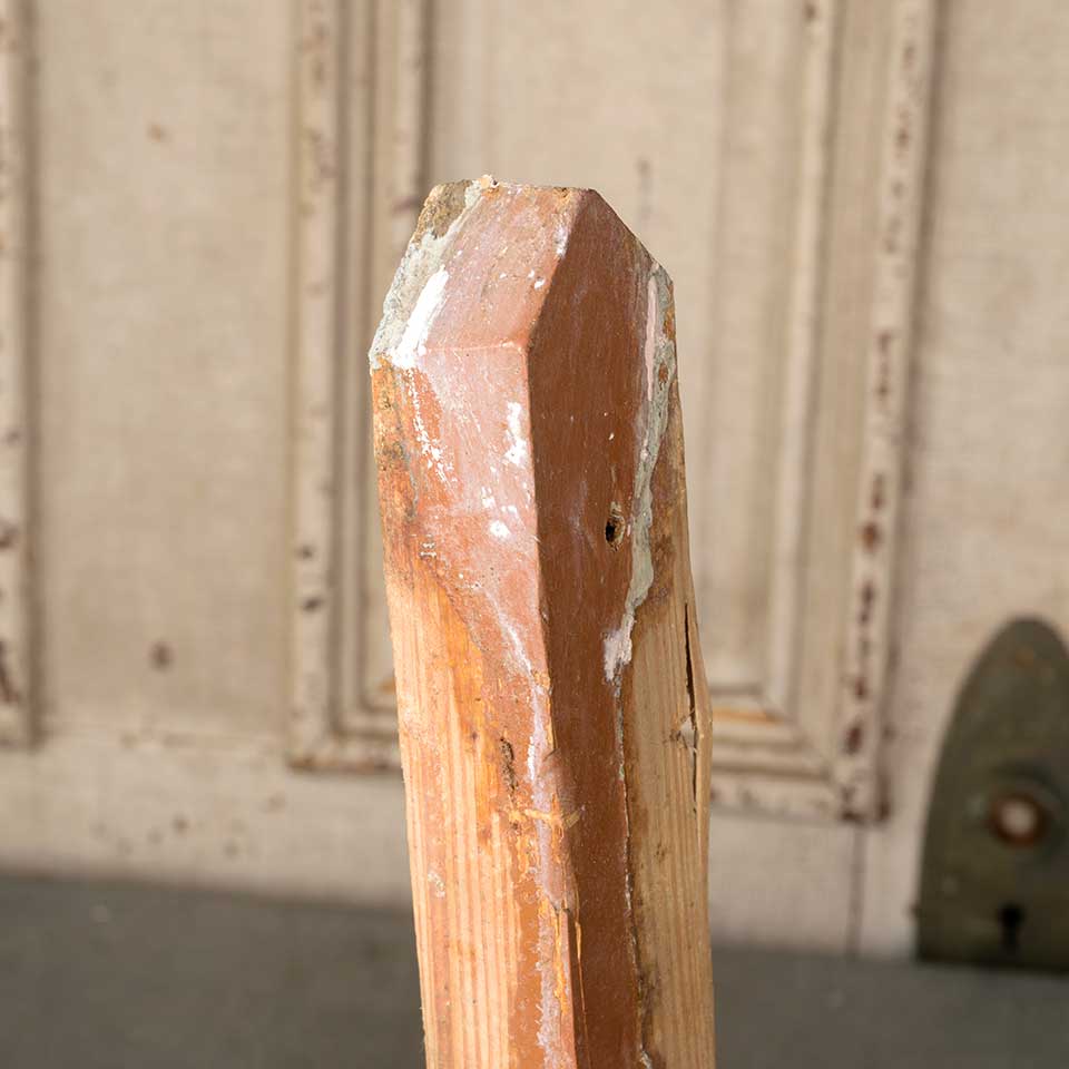 Architectural salvage antique wood interior corner baseboard trim block measuring approx. 1 3/8" wide x 9 1/2" tall x 1 1/8" front to back. Color and condition vary.