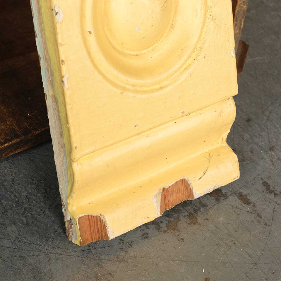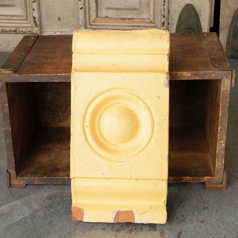 Architectural salvage antique painted wood interior door or window rosette trim block measuring approx. 5 1/2" wide x 11 1/4" tall x 1 1/8" front to back. Color and condition vary.