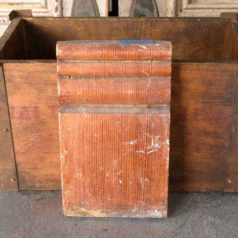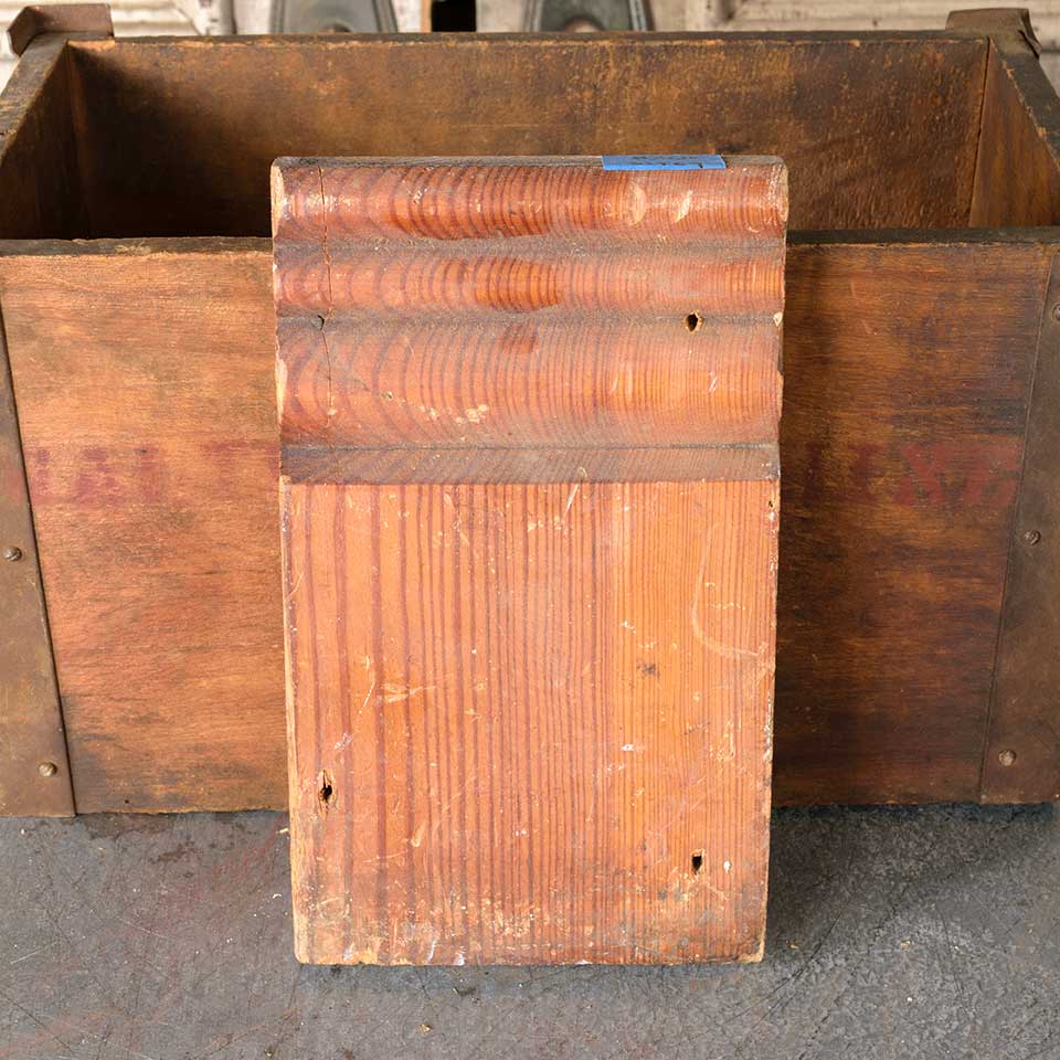 Architectural salvage antique wood interior door plinth trim block measuring approx. 5 5/8" wide x 9 1/4" tall x 1 3/8" thick. Color and condition may vary.