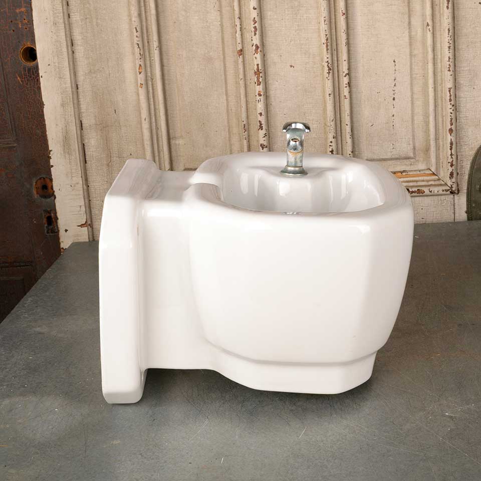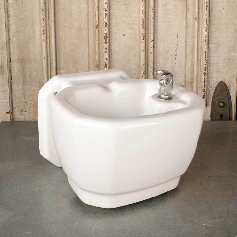 Architectural salvage antique wall mount porcelain Kohler drinking fountain measuring approx. 14 1/2" wide x 11" tall x 14 1/4" front to back. See photos to evaluate condition.