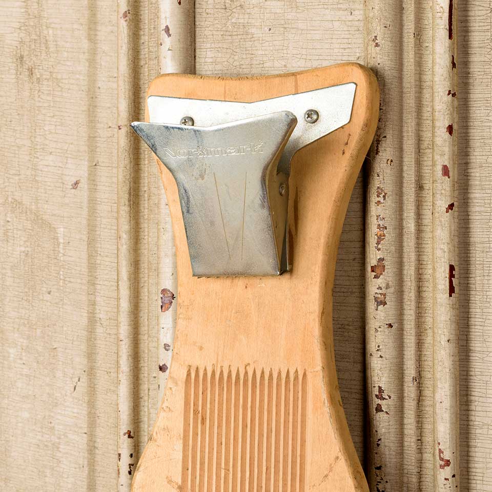 Vintage NORMARK wood fish scaling clip board measuring approx. 5 1/2" wide x 23 1/8" tall x 3" front to back. See photos to evaluate condition.