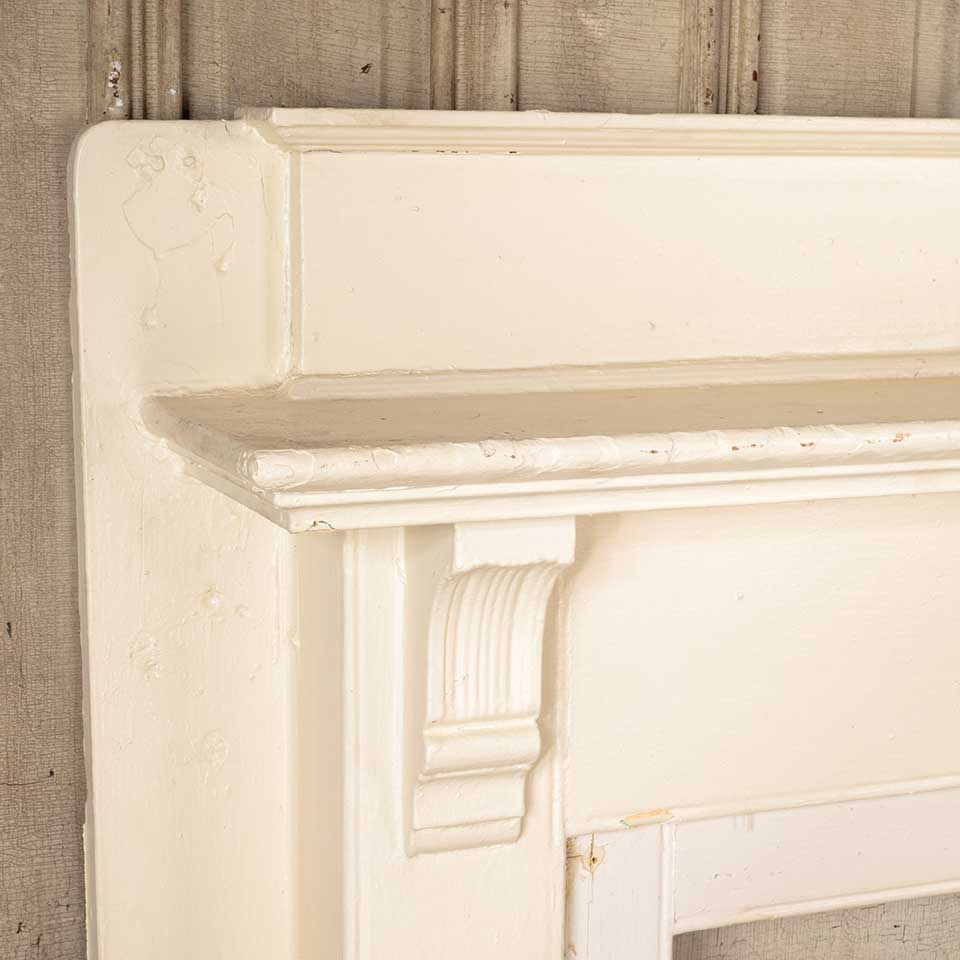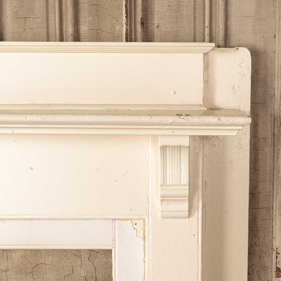 Architectural salvage antique painted wood fireplace mantel / mantle measuring approx. 60 3/4" wide x 54 1/4" tall x 10" front to back. The interior firebox opening measures approx. 35" wide x 36 1/8" tall. See photos to evaluate condition.