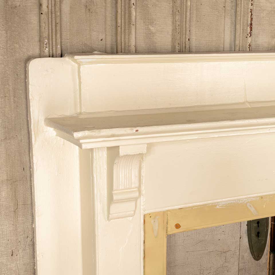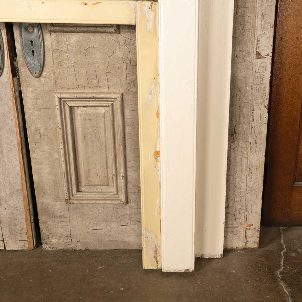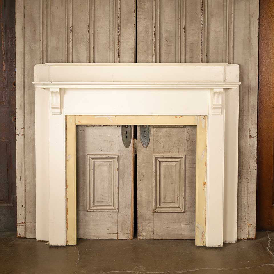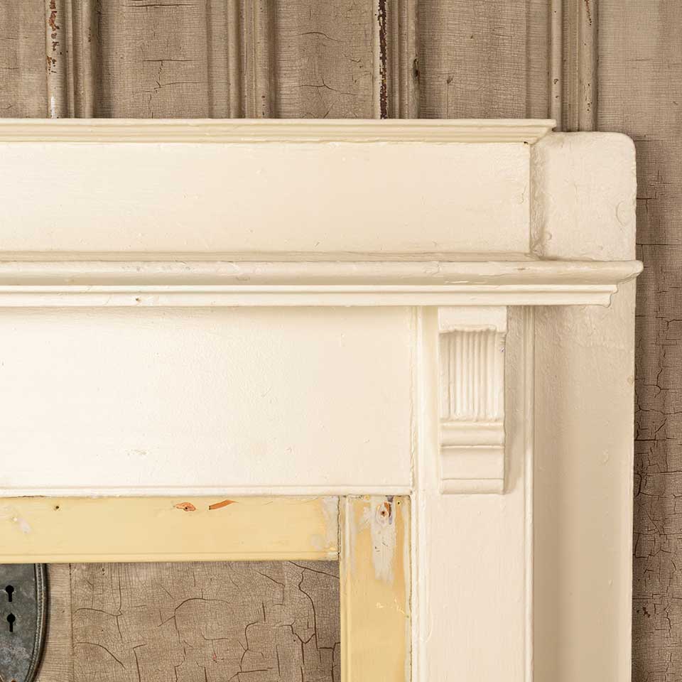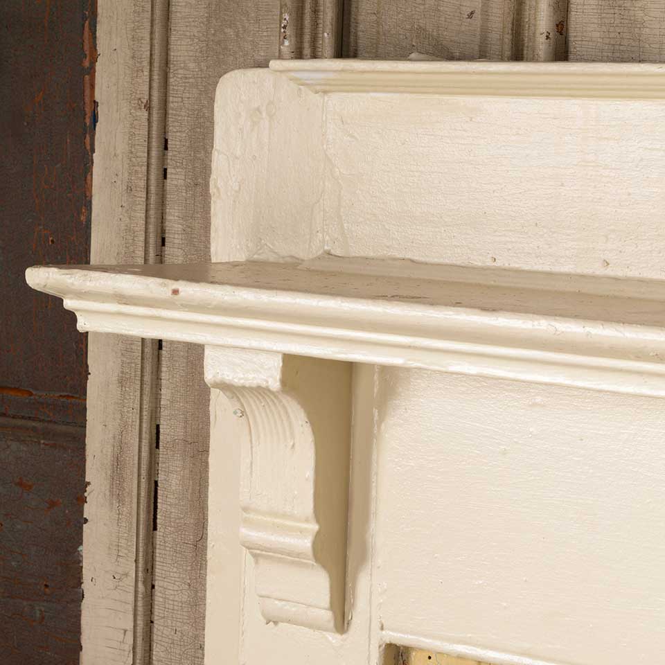 Architectural salvage antique painted wood fireplace mantel / mantle measuring approx. 60 3/4" wide x 53 1/2" tall x 10" front to back. The interior firebox opening measures approx. 35 1/2" wide x 36 1/4" tall. See photos to evaluate condition.