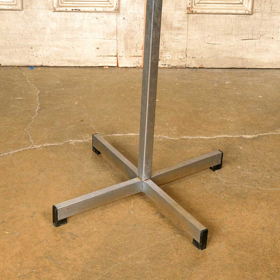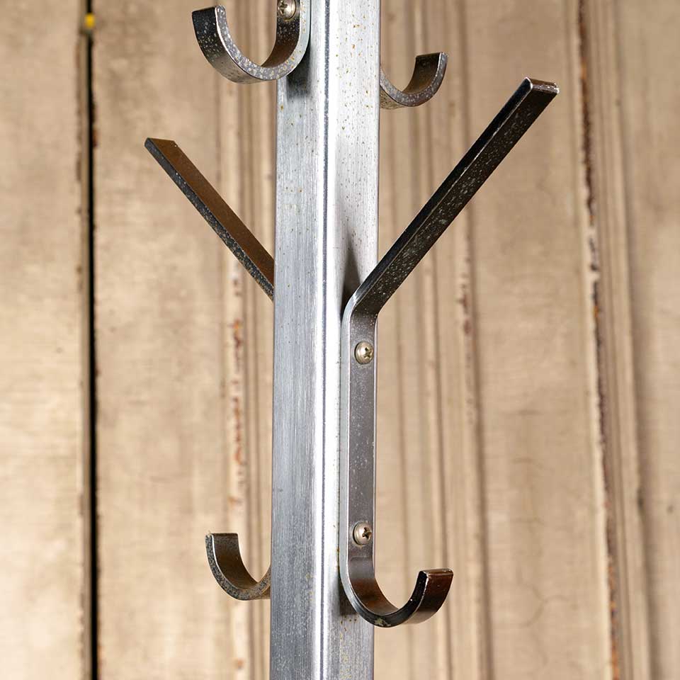 Architectural salvage vintage metal coat and hat rack hall tree stand measuring approx. 71" tall with a 21" diameter base. Manufactured by the Vogel-Peterson Company The Coat Rack People Elmhurst, Illinois. See photos to evaluate condition.