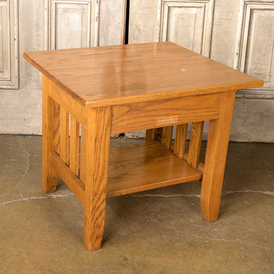 Architectural salvage solid oak wood end table measuring approx. 24" x 22" x 21" tall. See photos to evaluate condition.