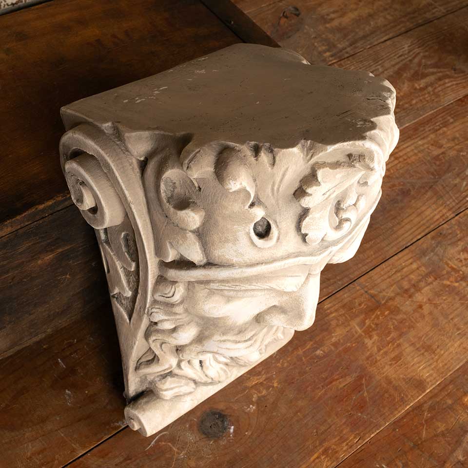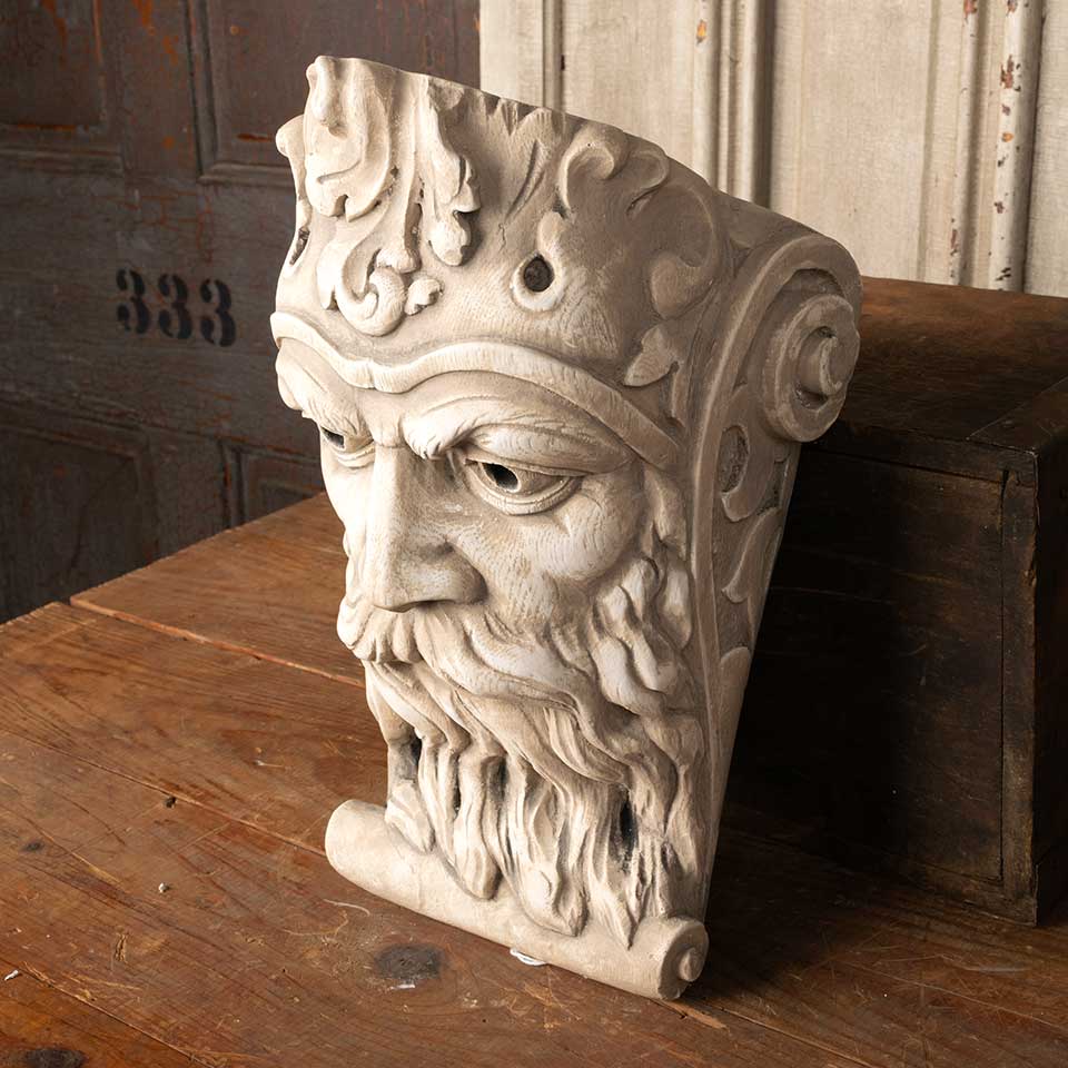 Cast plaster Bearded King's head wall hanging corbel bracket / shelf measuring approx. 8 1/4" wide x 12" tall x 9" front to back. Color and condition may vary.
