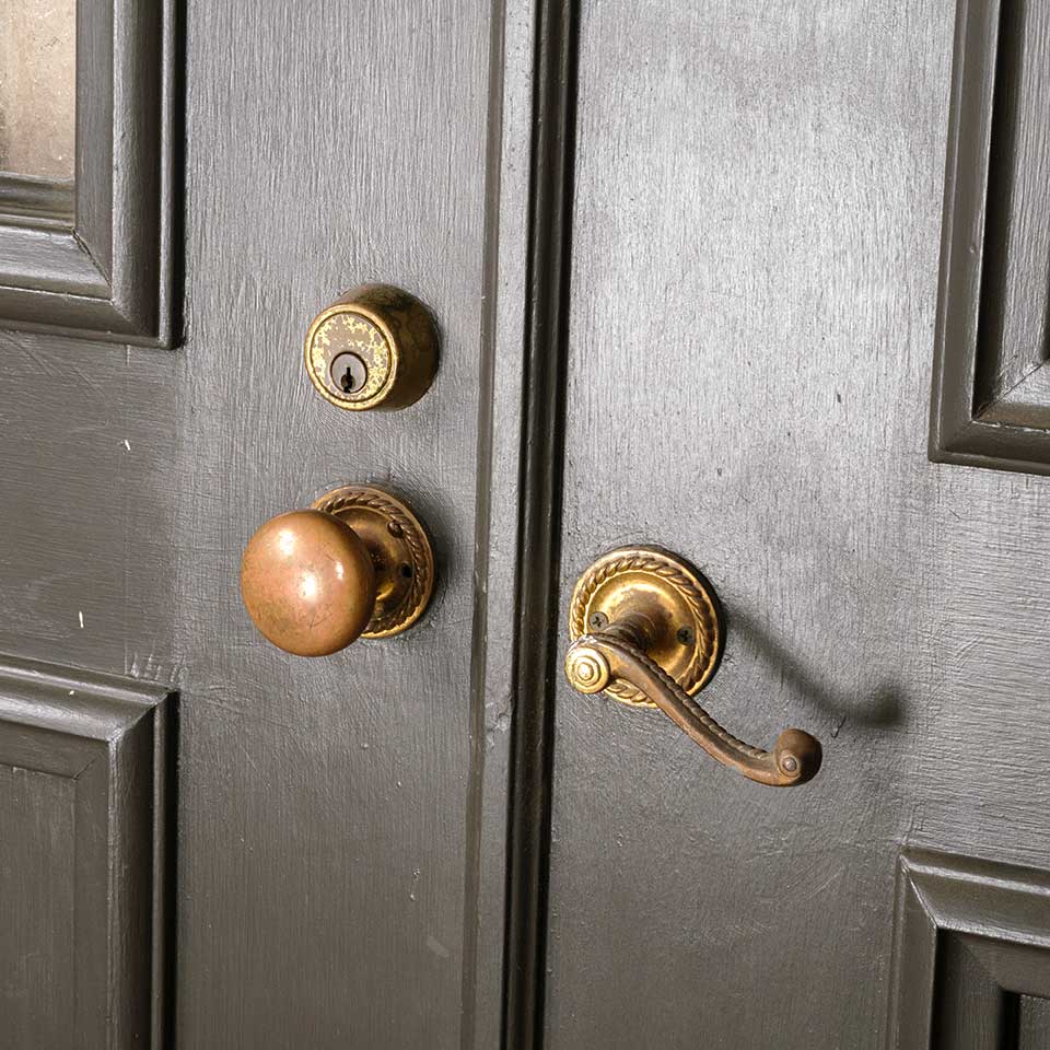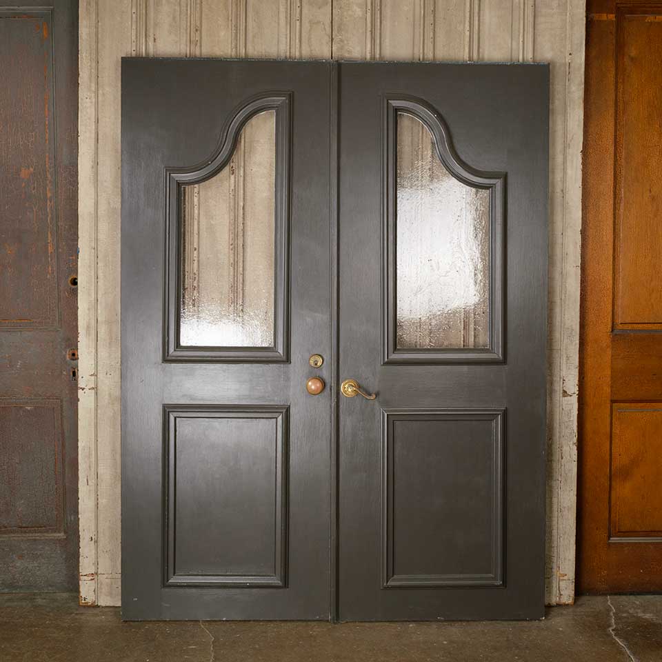 Architectural salvage vintage half lite wood entry doors together measuring approx. 59 3/4" wide x 78 5/8" tall x 1 3/4" thick. See photos to evaluate condition. Priced at $850 for the two doors together.