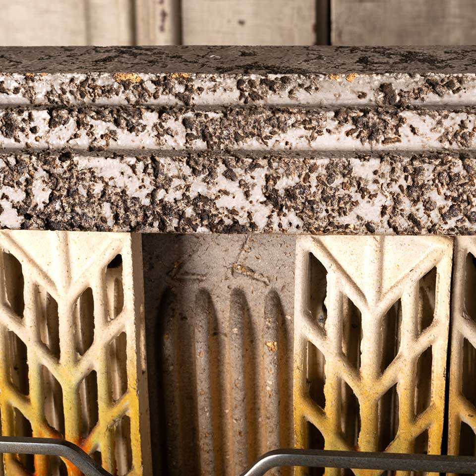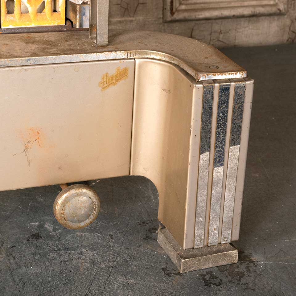 Architectural salvage antique Art Deco gas fireplace insert measuring approx. 24 1/2" wide x 19" tall x 11 1/2" front to back. One of the ceramic heating elements is missing. See photos to evaluate condition. Being sold for decorative purposes only.