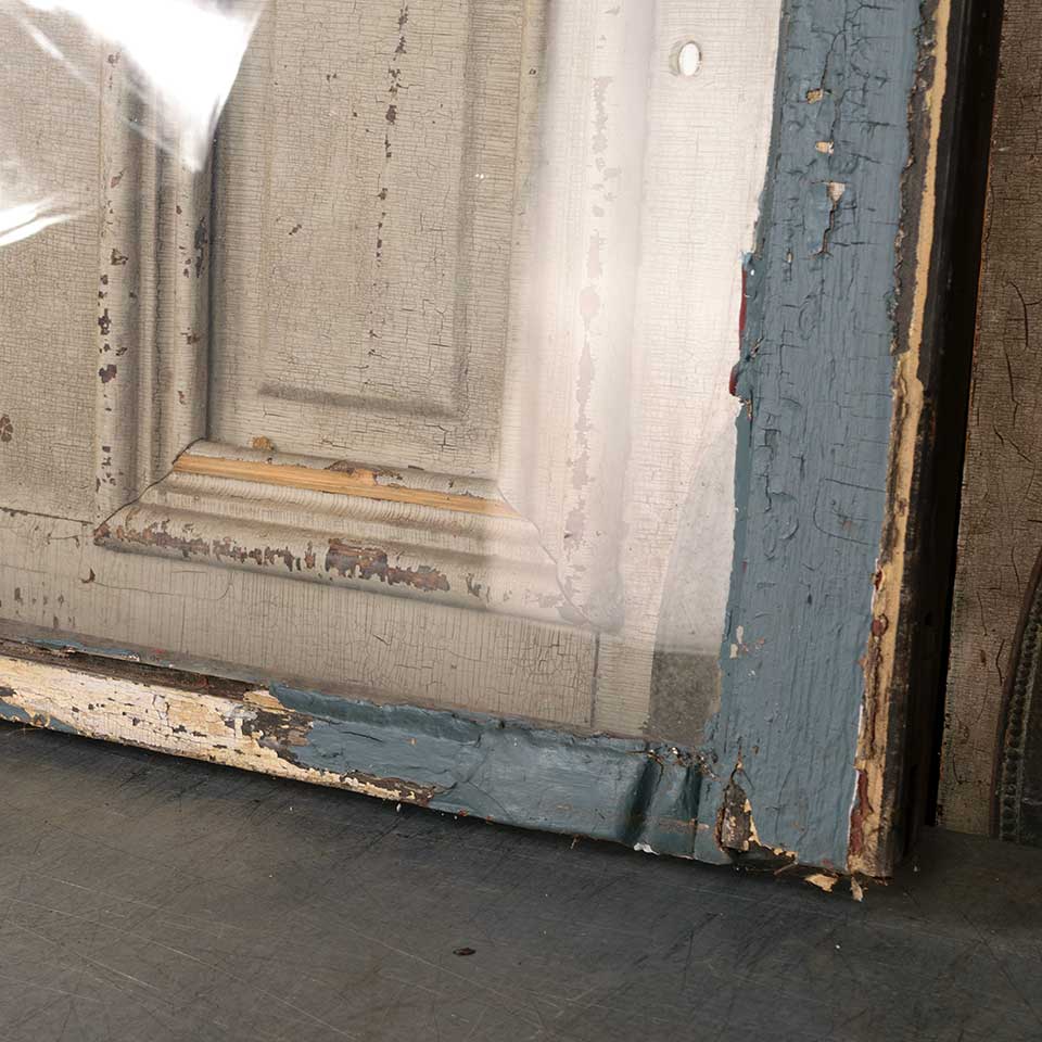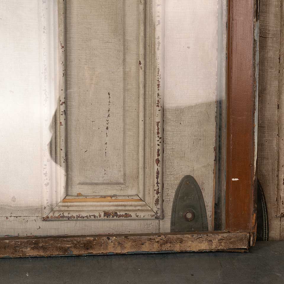 Architectural salvage antique single pane wood window sash with original wavy glass measuring approx. 32 1/2" wide x 39 3/8" tall x 1 3/8" thick. There's some damage at one of the top corners. See photos to evaluate condition.