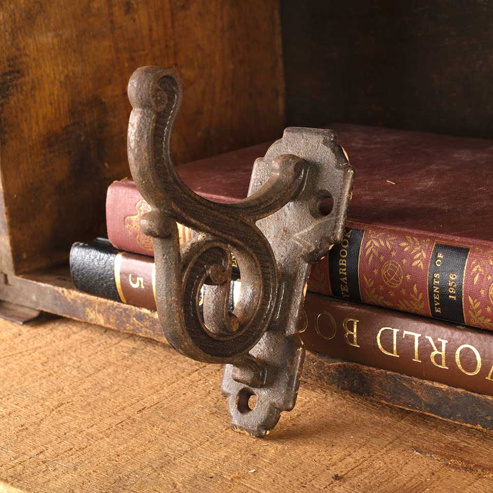 Architectural salvage antique ornate cast iron coat hook measuring approx. 1 3/4"" wide x 4 1/4" tall x 3 1/2" front to back. See photos to evaluate condition.