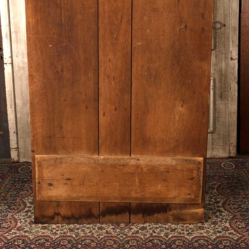 Architectural salvage antique rough sawn wood board barn door with wrought iron hardware measuring approx. 40 3/8" wide x 77 3/4" tall x 1" thick (plus 1" thick horizontal wood supports on back). See photos to evaluate condition.