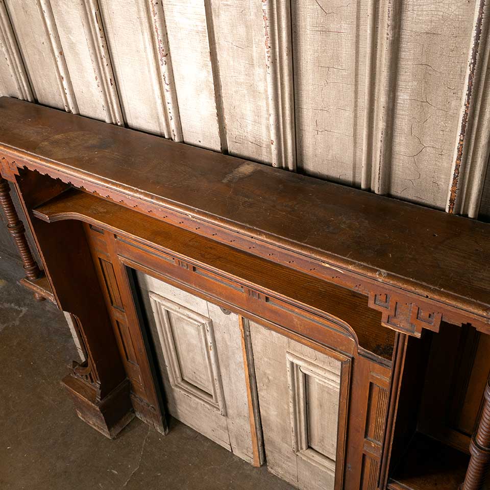 Architectural salvage antique Victorian wood fireplace mantel / mantle measuring approx. 60 1/8" wide x 48 3/4" tall x 8 1/2" front to back with an interior firebox opening measuring 27 1/2" wide x 31 3/4" tall. See photos to evaluate condition.