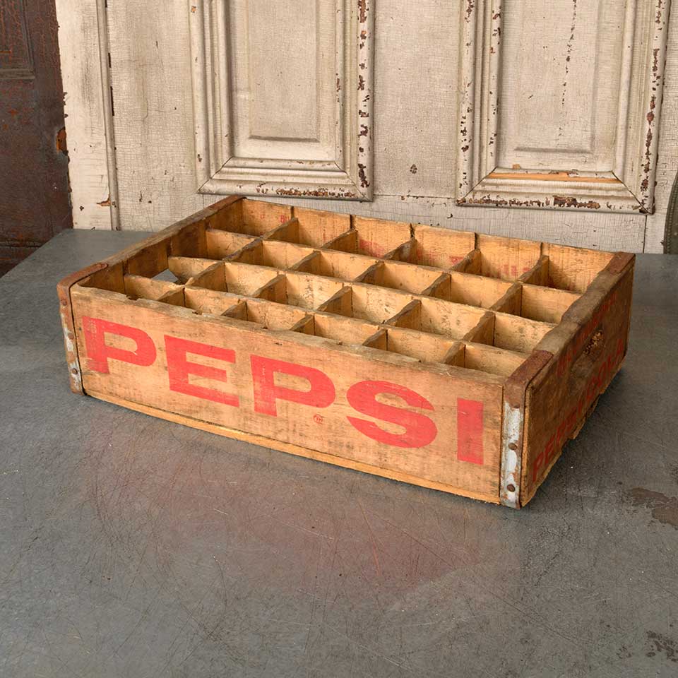 Antique wood COLUMBUS, OHIO PEPSI-COLA divided 24 bottle crate measuring approx. 18 1/2" wide x 4 3/4" tall x 12" front to back.