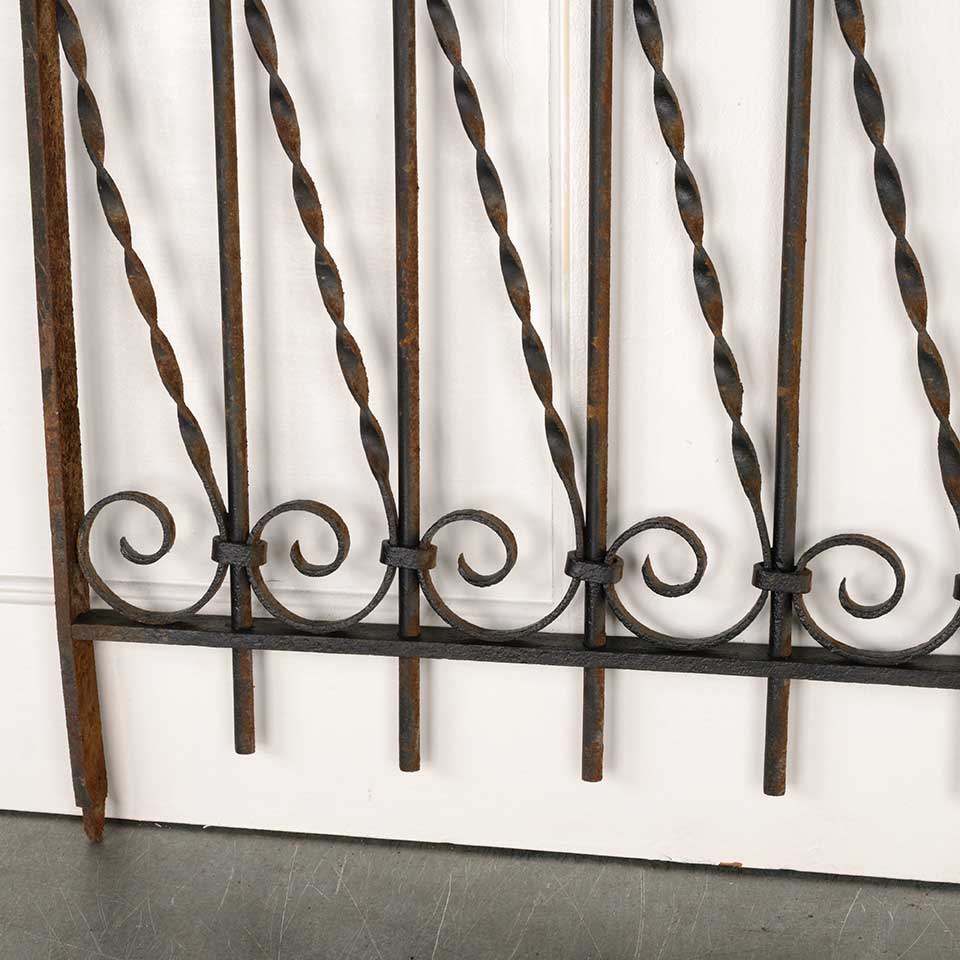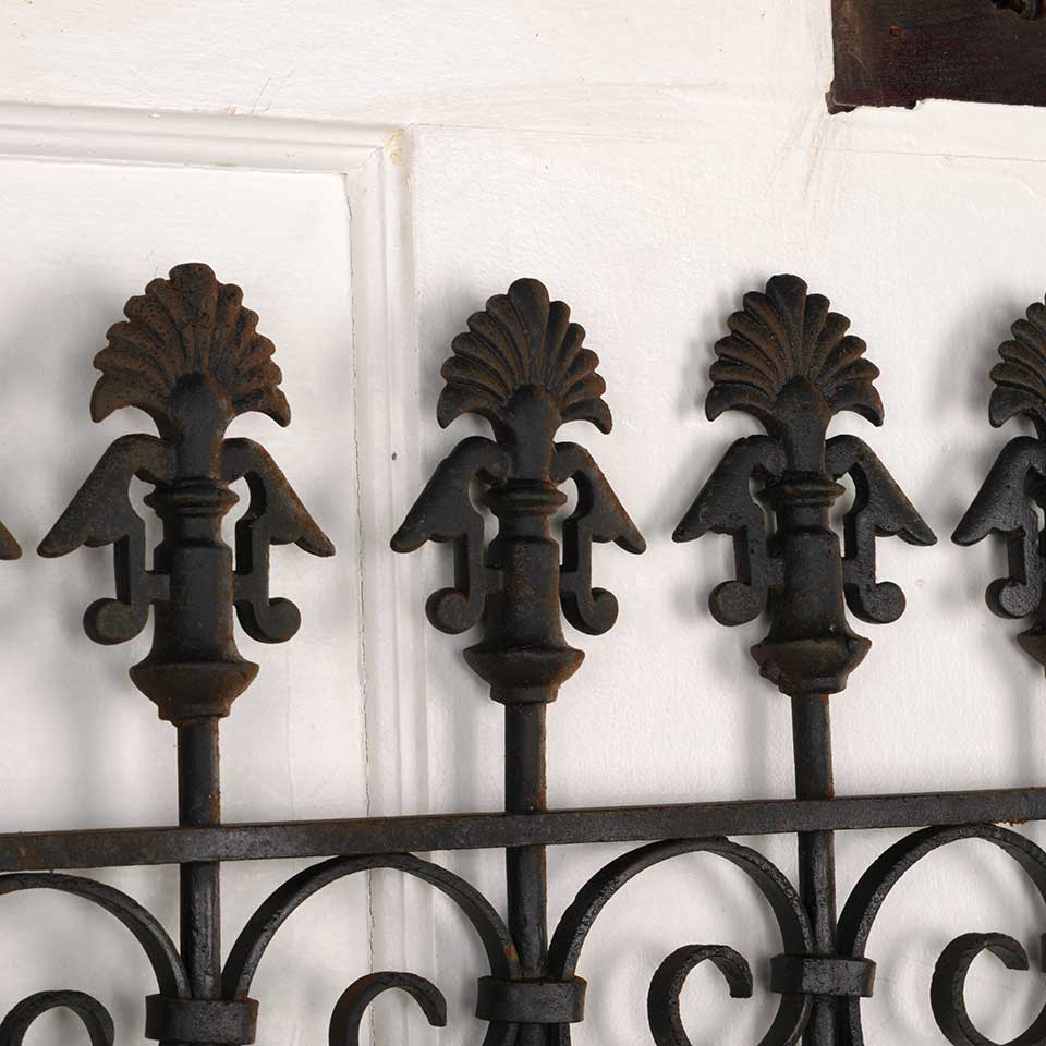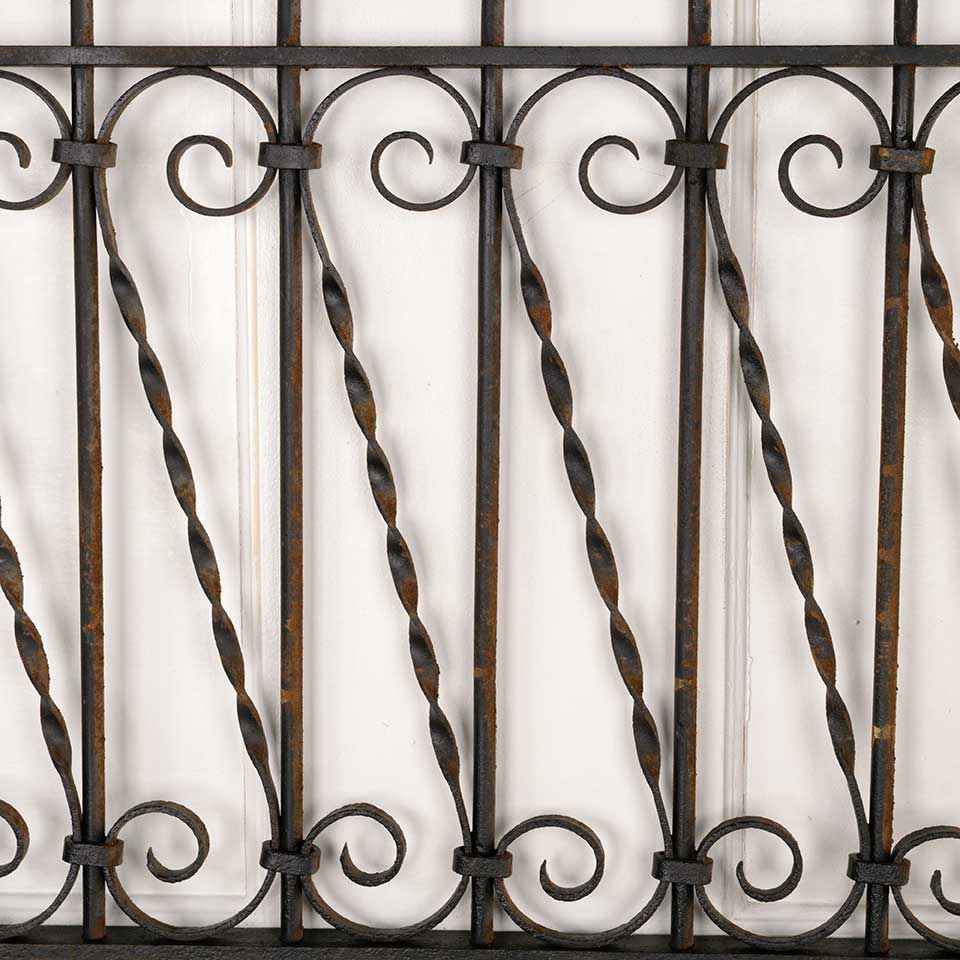 Architectural salvage antique wrought iron window guard panel measuring approx. 33 1/2" wide x 25 1/4" tall x 1" front to back. See photos to evaluate condition.