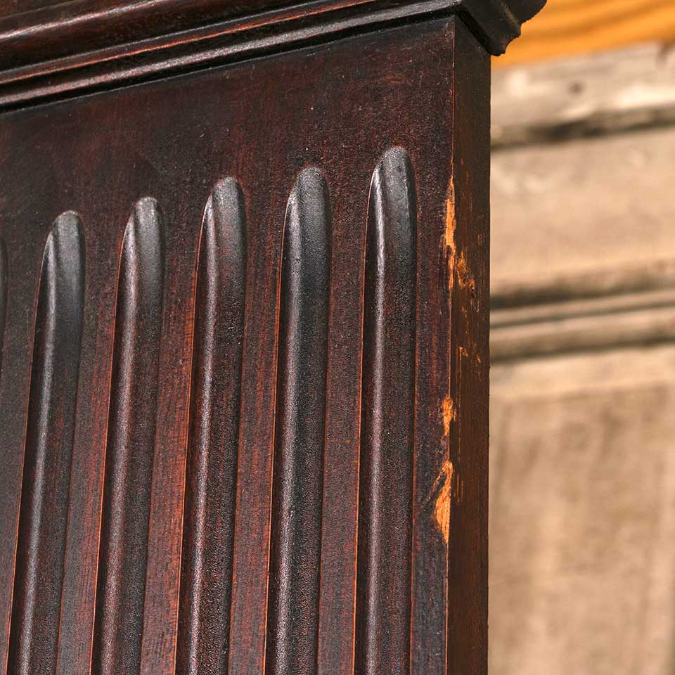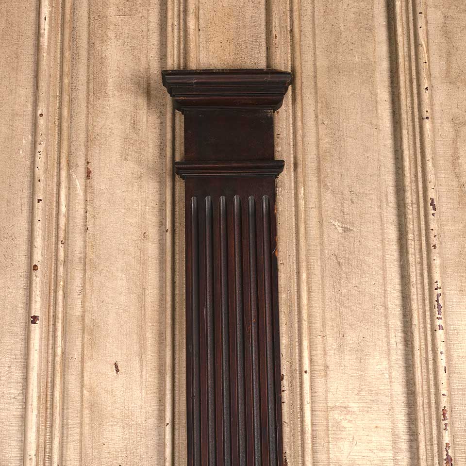 Architectural salvage antique fluted mahogany wood column pilaster trim piece measuring approx. 7 3/4" wide x 87 1/4" tall x 2 1/8" front to back. There's some wood loss at the top and bottom. See photos to evaluate condition.