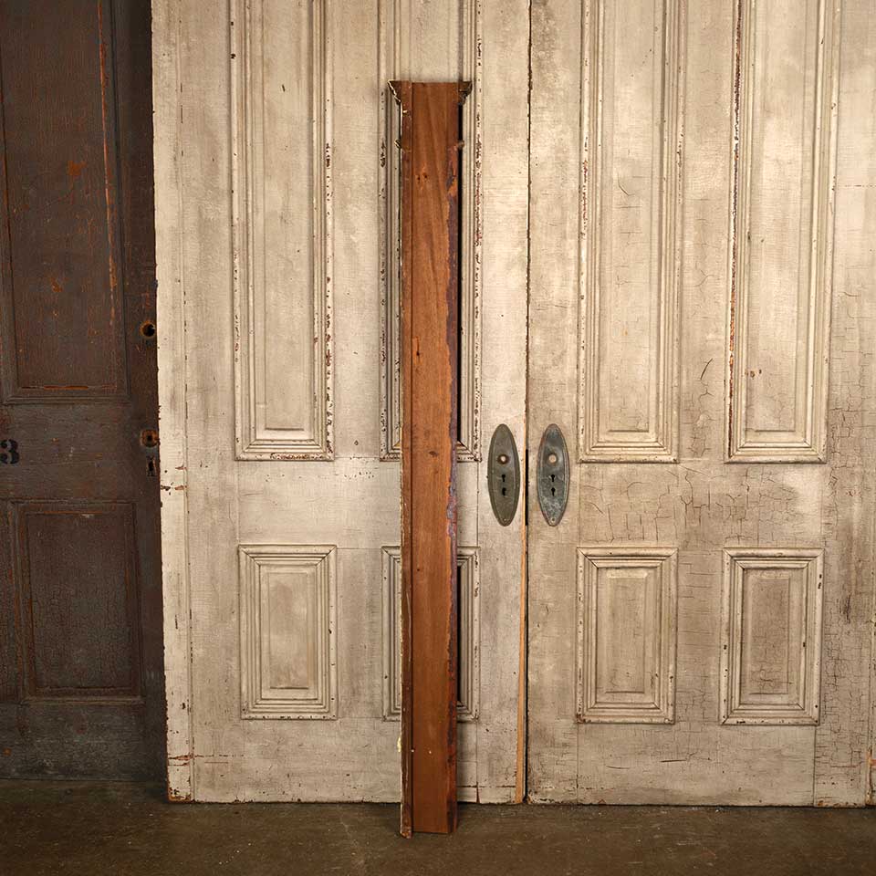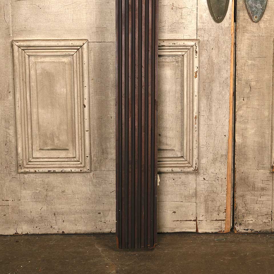 Architectural salvage antique fluted mahogany wood column pilaster trim piece measuring approx. 7 3/4" wide x 70 1/2" tall x 3" front to back. See photos to evaluate condition.