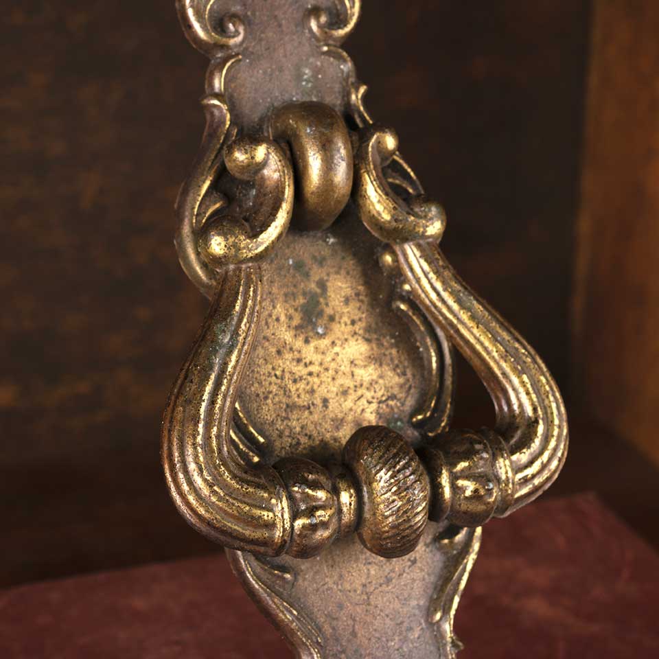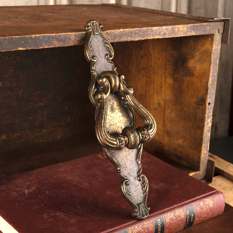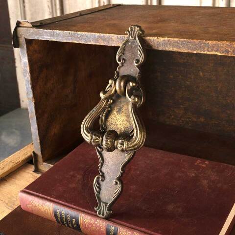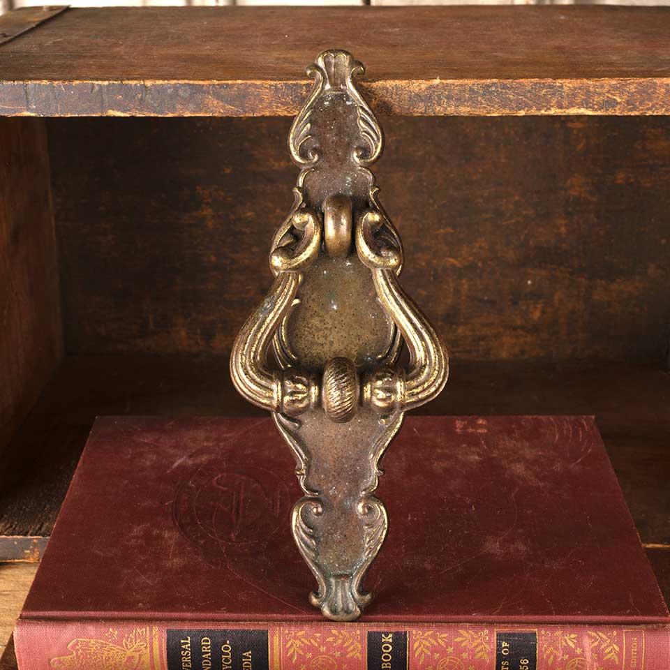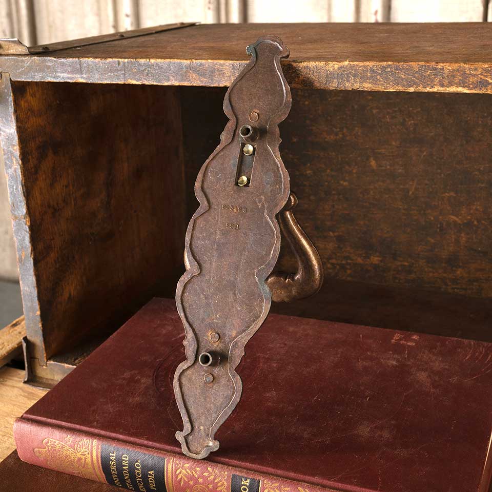 Vintage brass furniture pull handle hardware measuring approx. 2 7/8" wide x 7 3/4" tall x 3/4" front to back with mounts 4" on center. Mounting screws not included. See photos to evaluate condition.