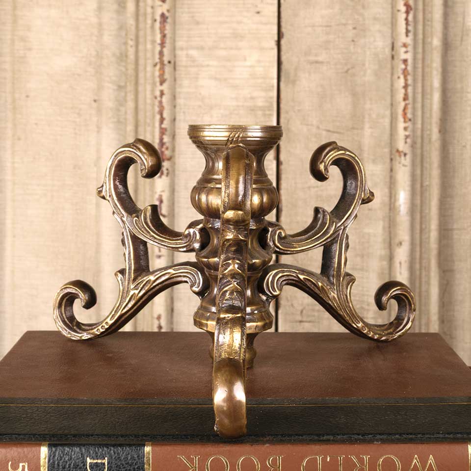 Architectural salvage ornate brass lamp base measuring approx. 8 1/2" in diameter x 5 1/4" tall. More available, please inquire.