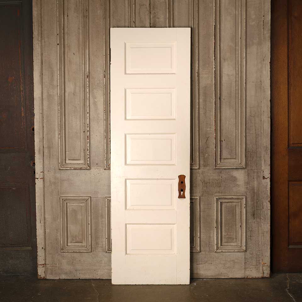 Architectural salvage antique five panel painted oak wood interior door measuring approx. 23 3/4" wide x 77 1/4" tall x 1 3/8" thick. See photos to evaluate condition.