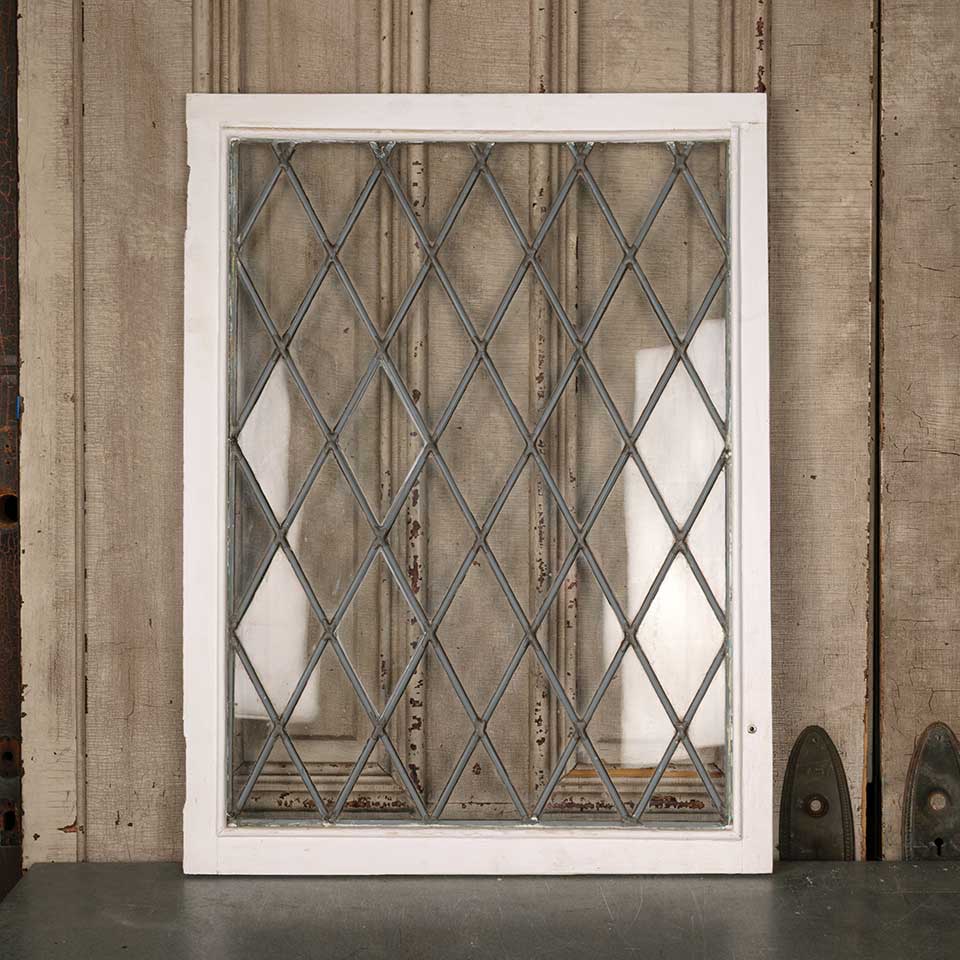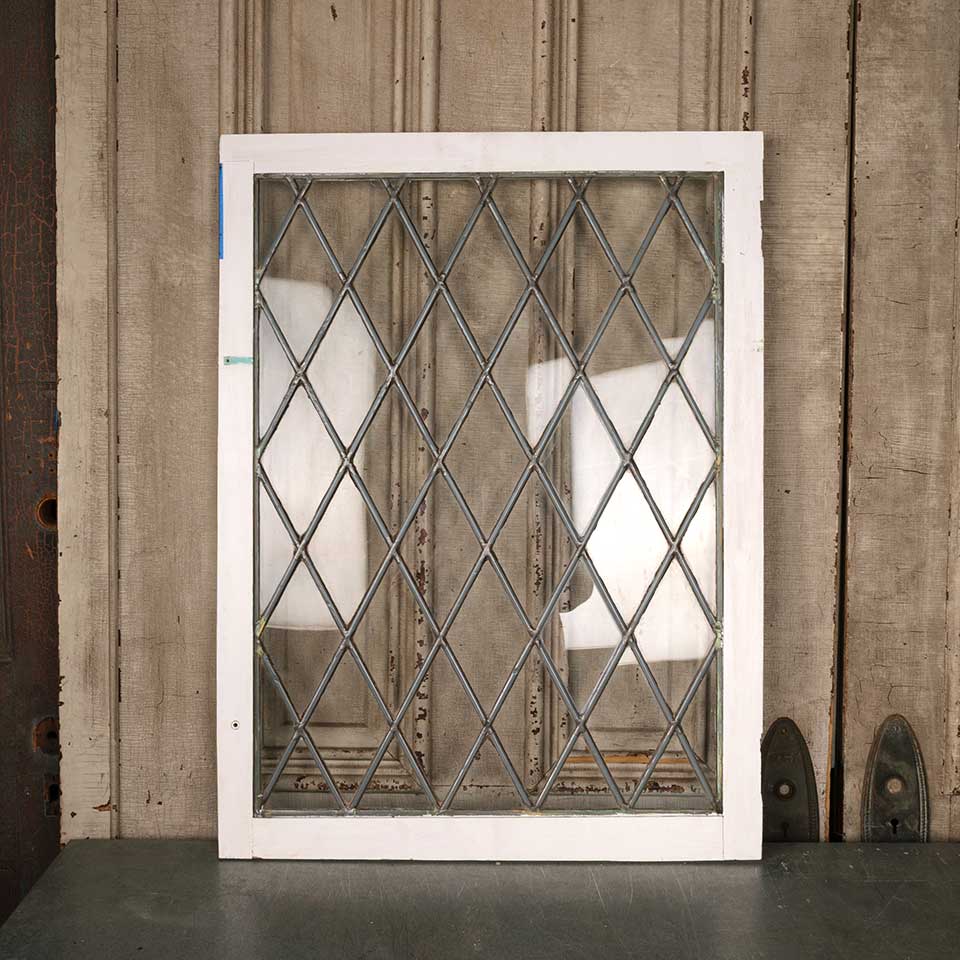 Architectural salvage antique leaded diamond paned cabinet door measuring approx. 23 3/4" wide x 31 3/4" tall x 3/4" thick. See photos to evaluate condition.