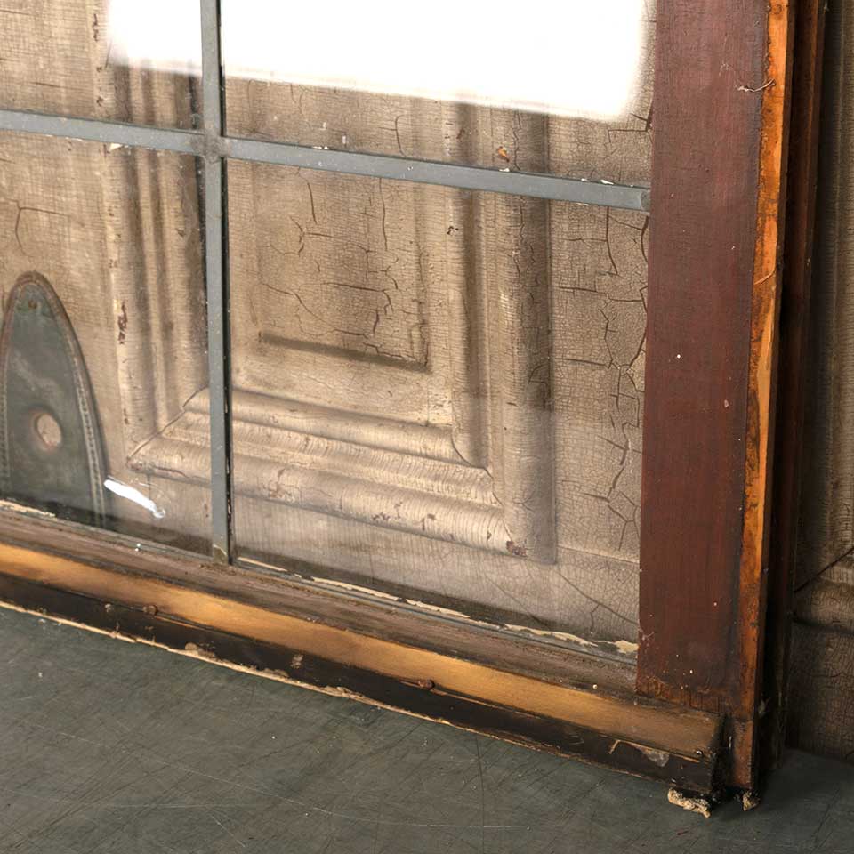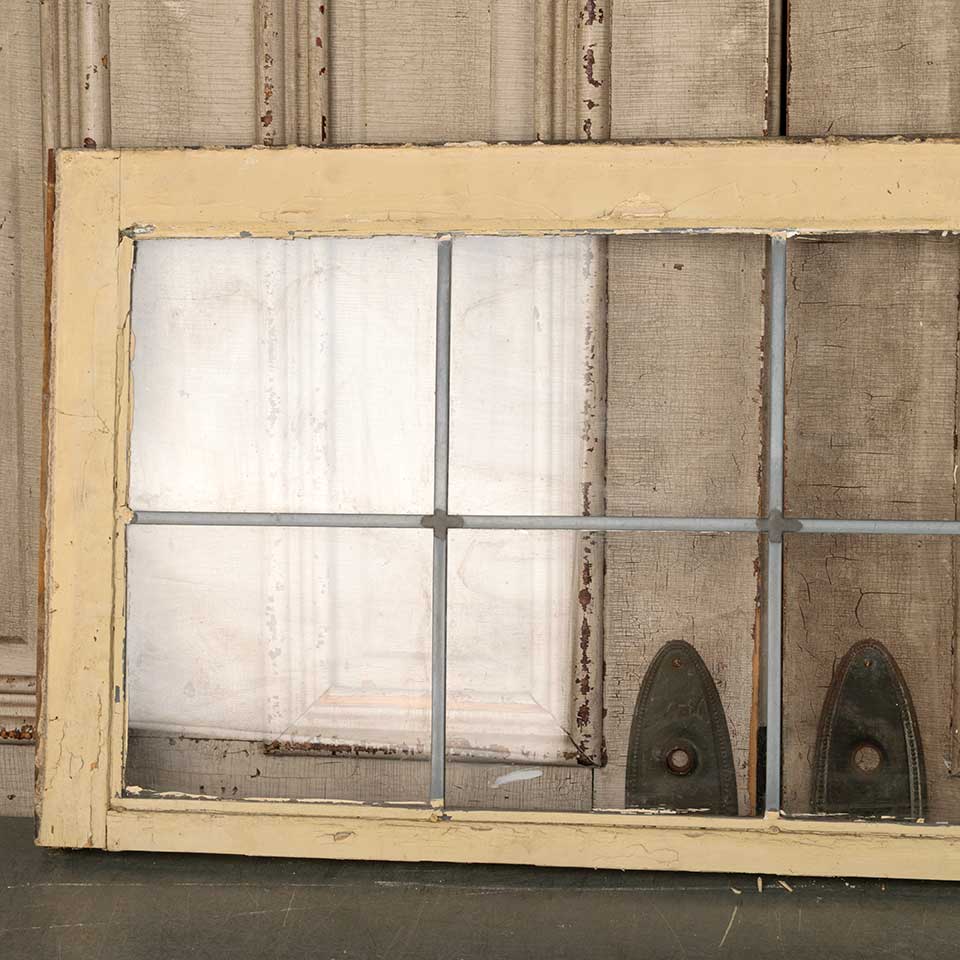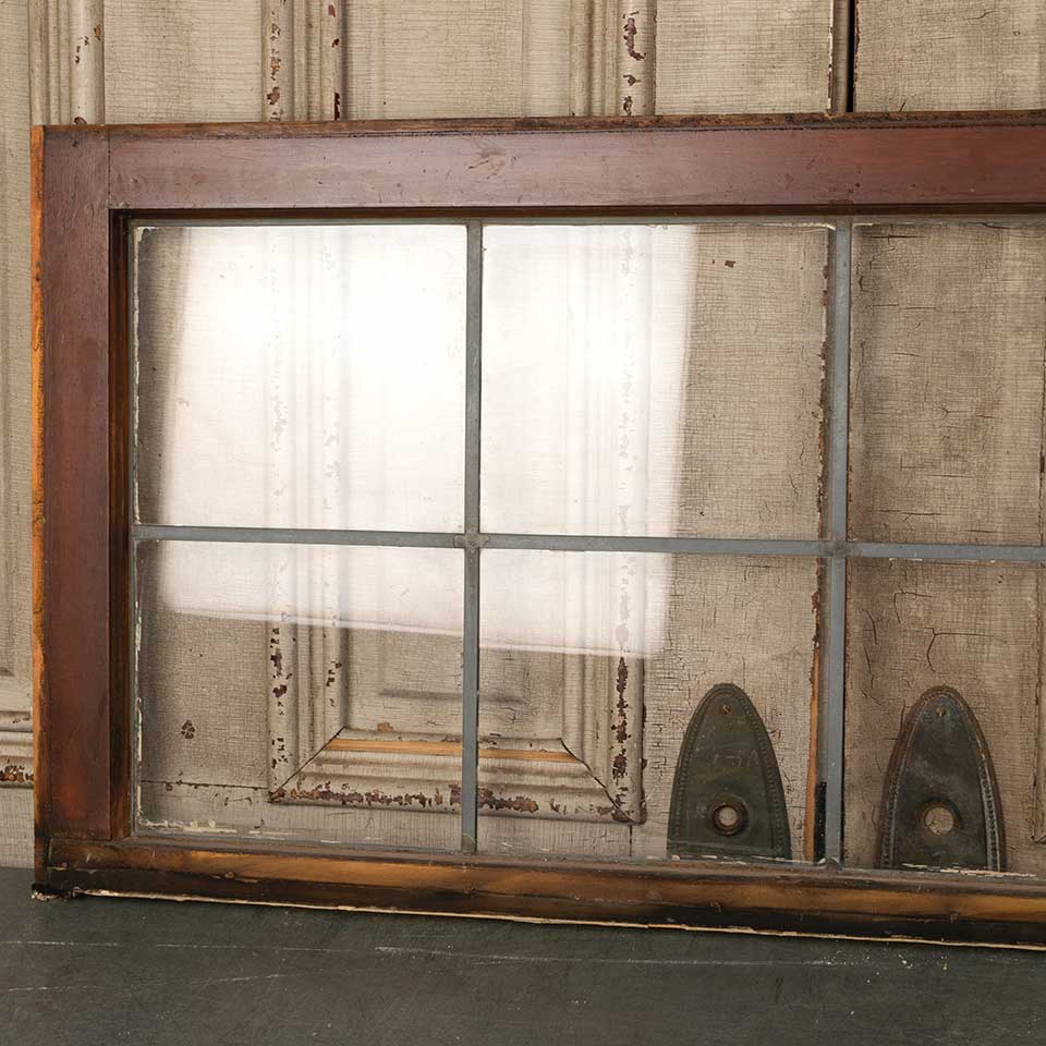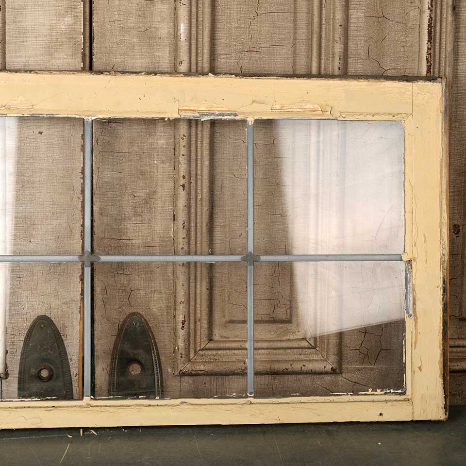 Architectural salvage antique eight lite leaded glass window sash measuring approx. 40 1/4" wide x 19 1/4" tall x 1 3/8" thick. See photos to evaluate condition.