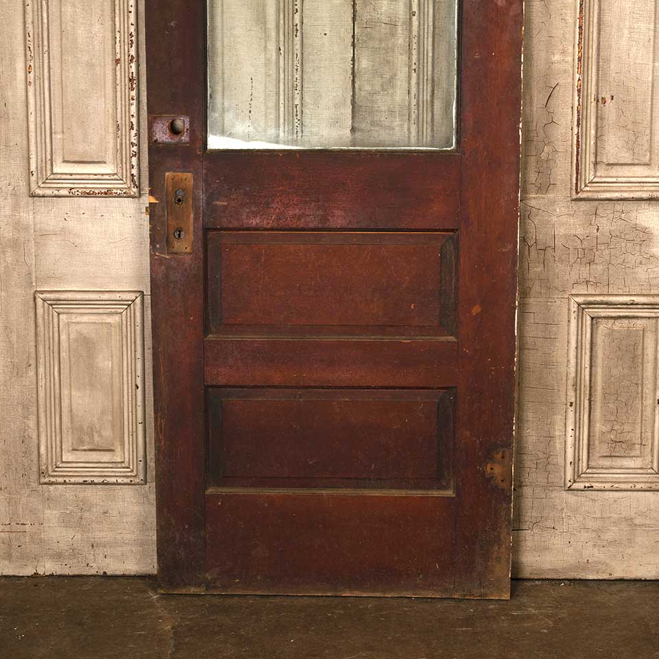 Architectural salvage antique half lite painted wood entry door with original wavy glass and mortise lock measuring approx. 31 3/4" wide x 79 1/2" tall x 1 3/8" thick. This door is painted on one side and natural on the other. See photos to evaluate condition.