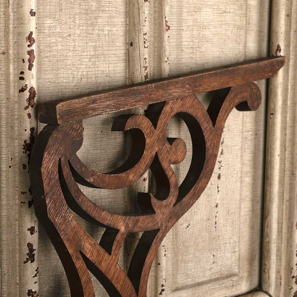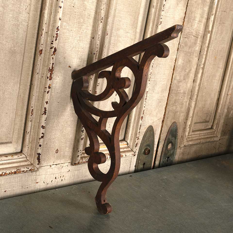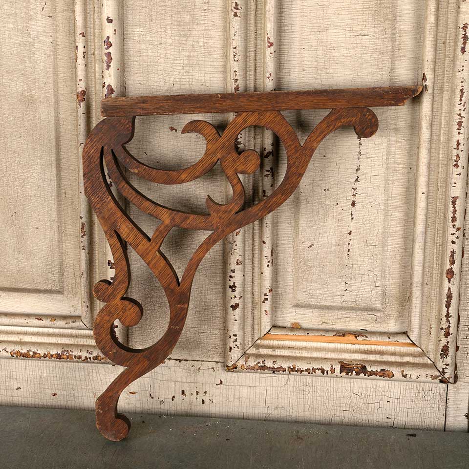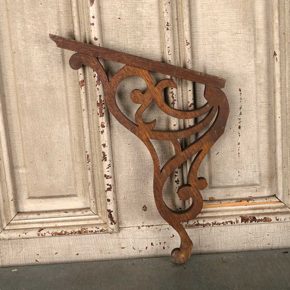 Architectural salvage antique oak wood decorative furniture or interior trim bracket measuring approx. 1" wide x 13 5/8" tall x 14" front to back. Se photos to evaluate condition.