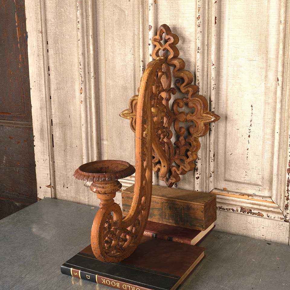 Large painted cast iron candle holder wall sconce measuring approx. 11 1/4" wide x 19" tall x 14 1/8" front to back. See photos to evaluate condition.