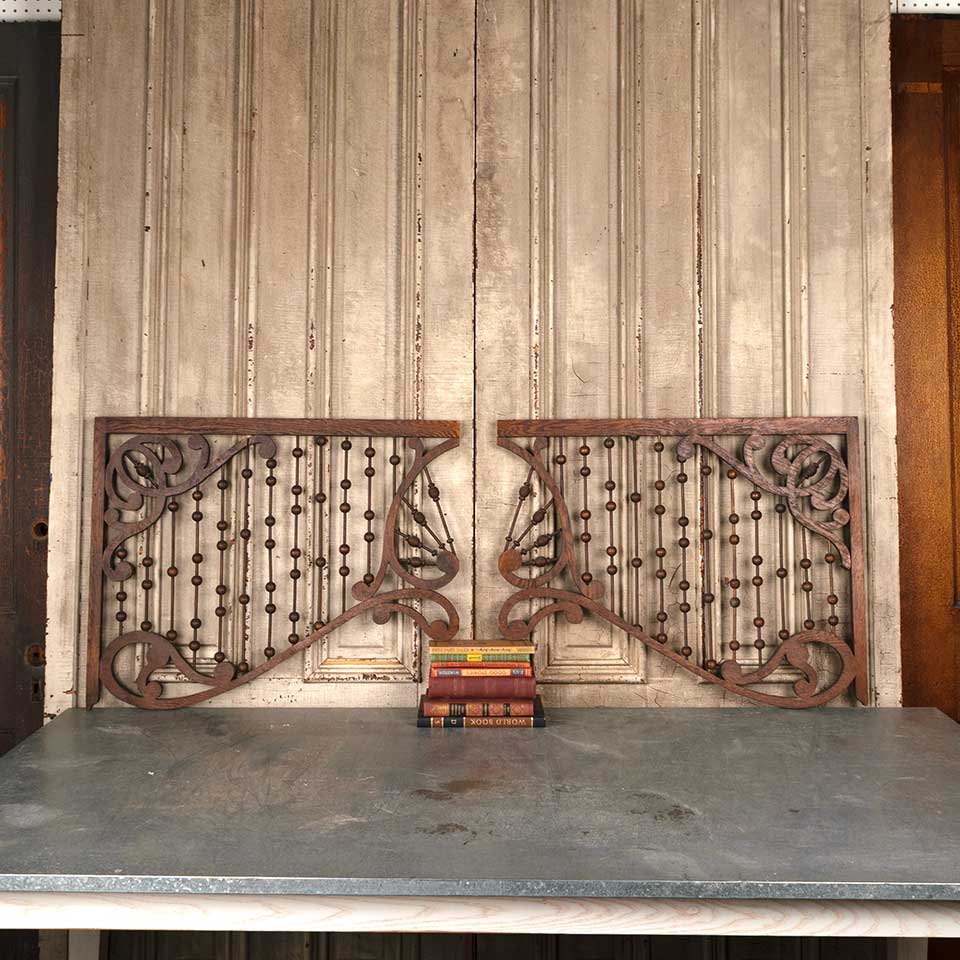 Set of two architectural salvage antique oak Victorian interior stick and ball fretwork panels each measuring approx. 30 3/4" wide x 24 1/8" tall x 3/4" thick. See photos to evaluate condition. Priced at $575 for the two piece set.
