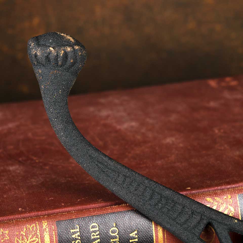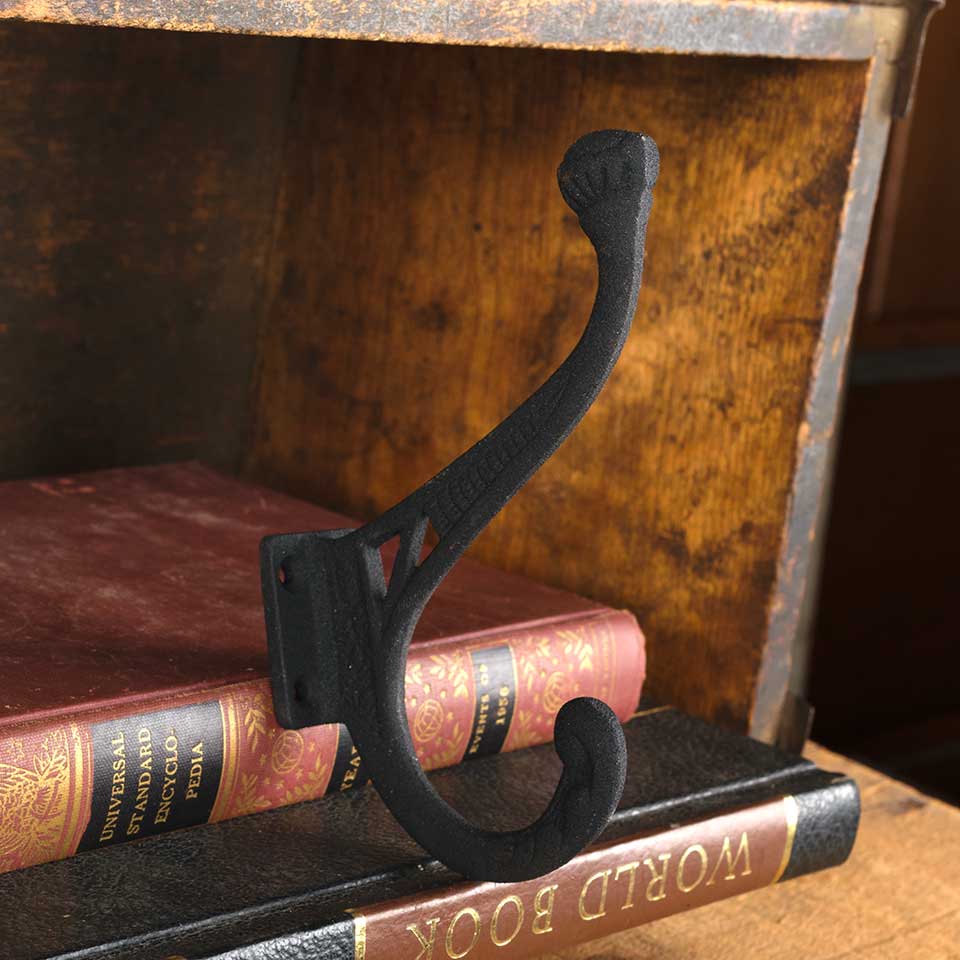 Architectural salvage reproduction ornate wall mount cast iron coat / hat hook measuring approx. 1" wide x 4 3/4" tall x 4" front to back. Color and condition may vary.