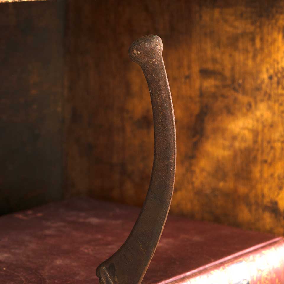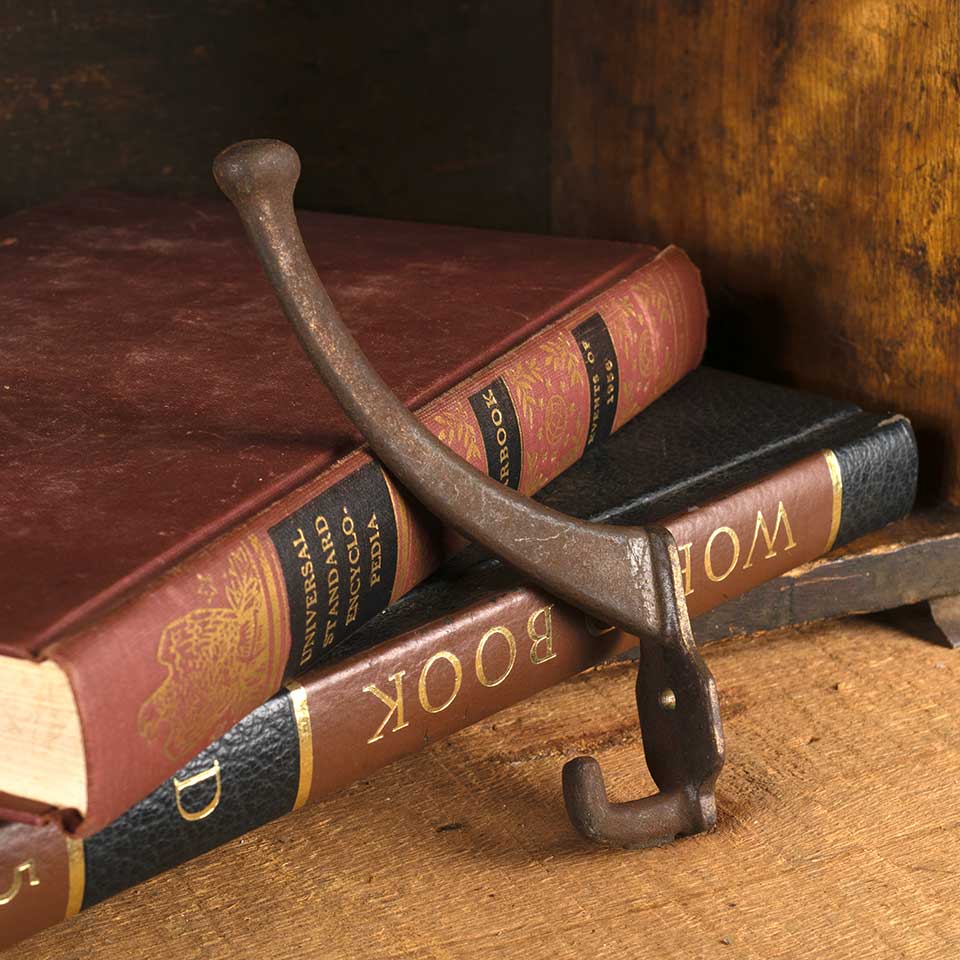 Architectural salvage antique cast iron hall tree coat / hat hook measuring approx. 3/4" wide x 4 3/4" tall x 3" front to back. Color and condition may vary.