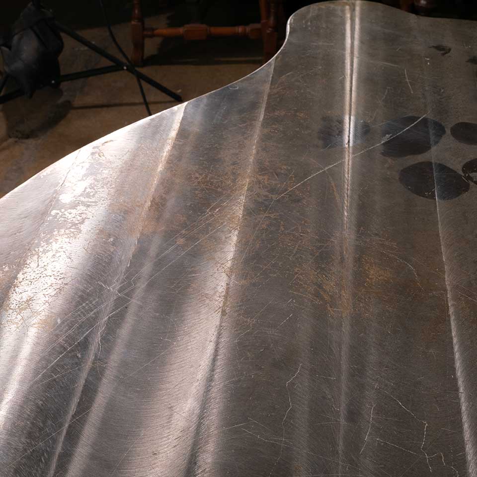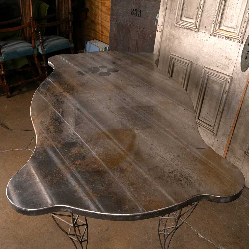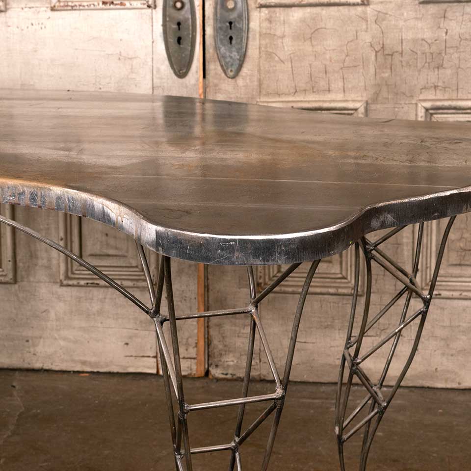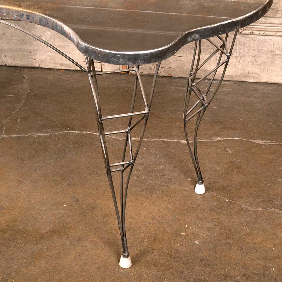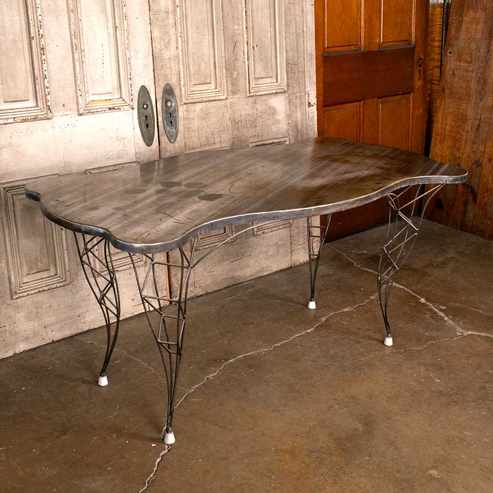 Artist made contemporary metal table / desk measuring approx. 61" wide x 29 1/8" tall x 31 3/8" front to back. See photos to evaluate condition.