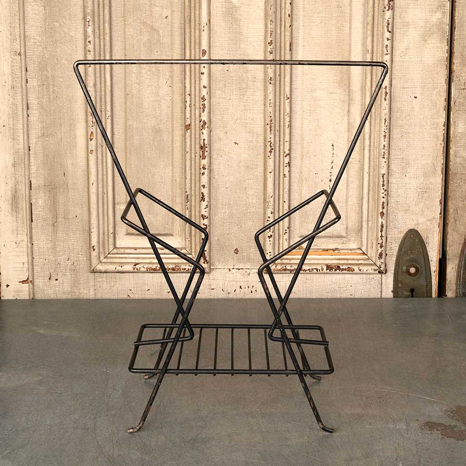 Mid Century Modern vintage metal wire magazine rack measuring approx. 16 3/8" wide x 19 5/8" tall x 7 1/8" front to back. See photos to evaluate condition.