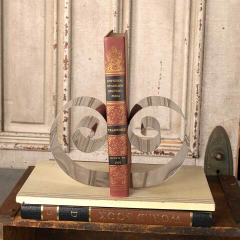 Vintage Mid Century Modern spring coiled metal book holder measuring approx. 10 1/2" wide x 5 1/4" tall x 6" front to back. See photos to evaluate condition.