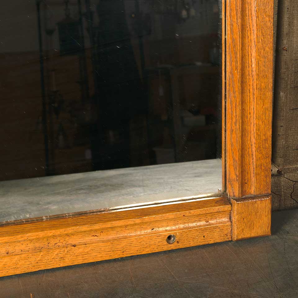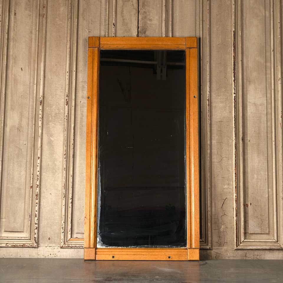 Wood framed wall mirror measuring approx. 21 3/4" wide x 43 7/8" tall x " front to back. The mirror is not antique and there are some holes drilled through the frame. See photos to evaluate condition.