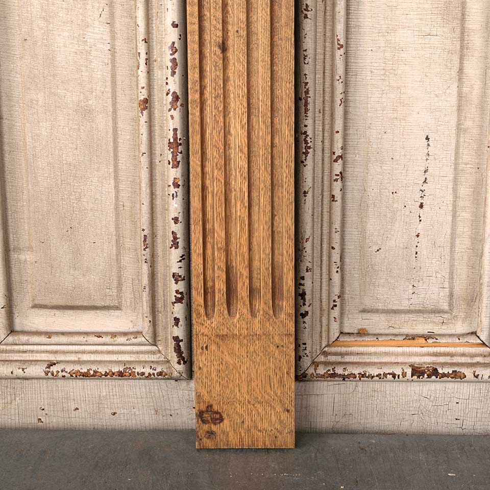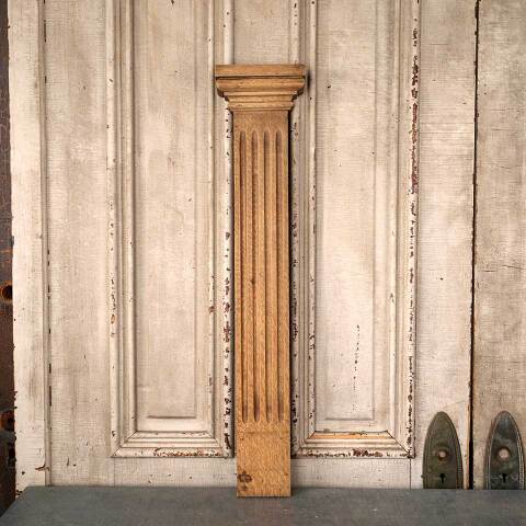 Architectural salvage antique fluted oak wood fireplace mantel / furniture column pilaster measuring approx. 6 1/2" wide x 31 3/4" tall x 2" front to back (overall dimensions). See photos to evaluate condition.
