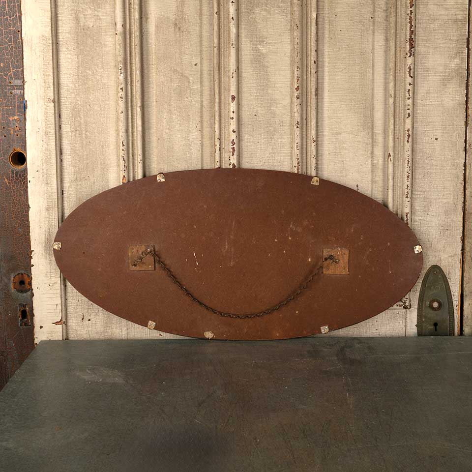 Antique beveled glass oval mirror measuring approx. 30" wide x 14" tall x 5/8" front to back. See photos to evaluate condition.