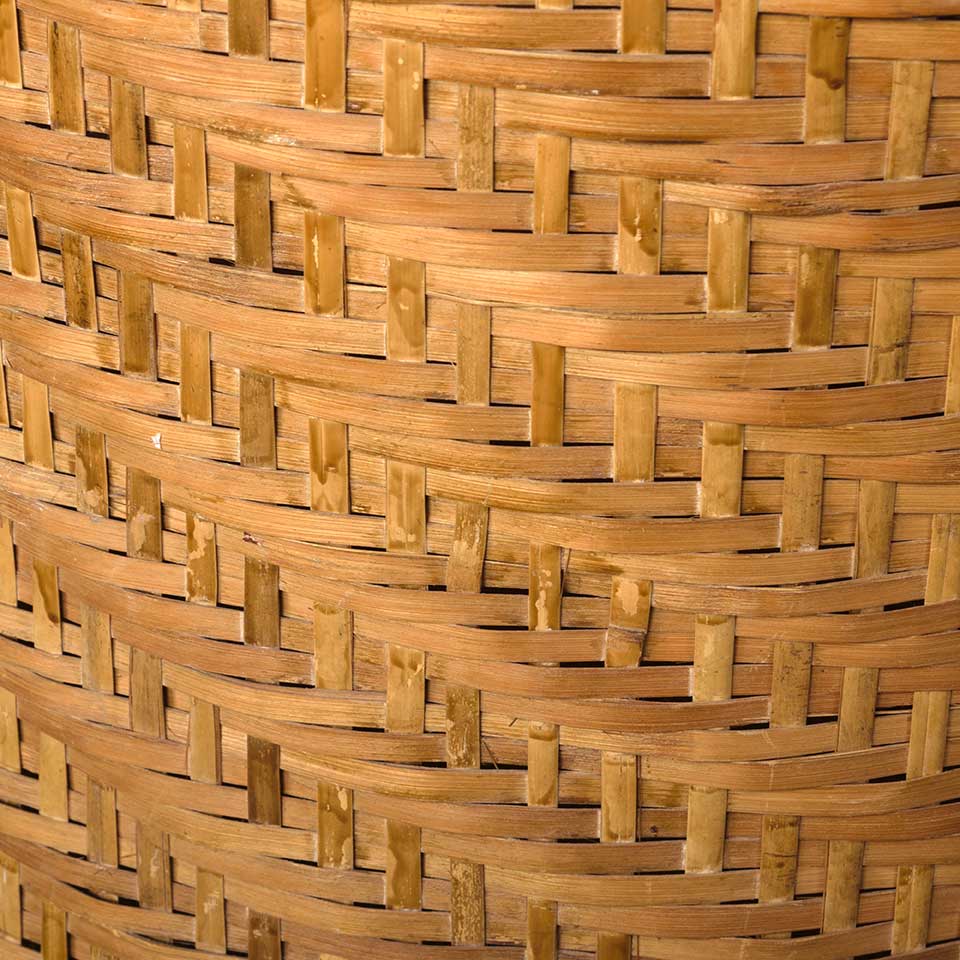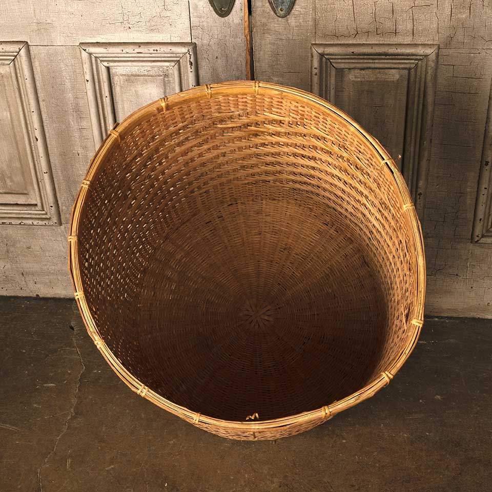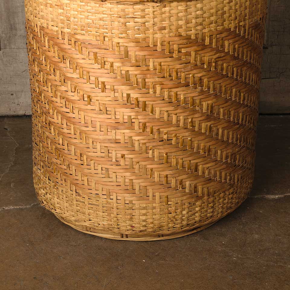Large hand woven cylindrical basket measuring approx. 22 1/2" in diameter x 21 1/2" tall. See photos to evaluate condition.