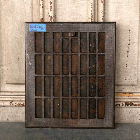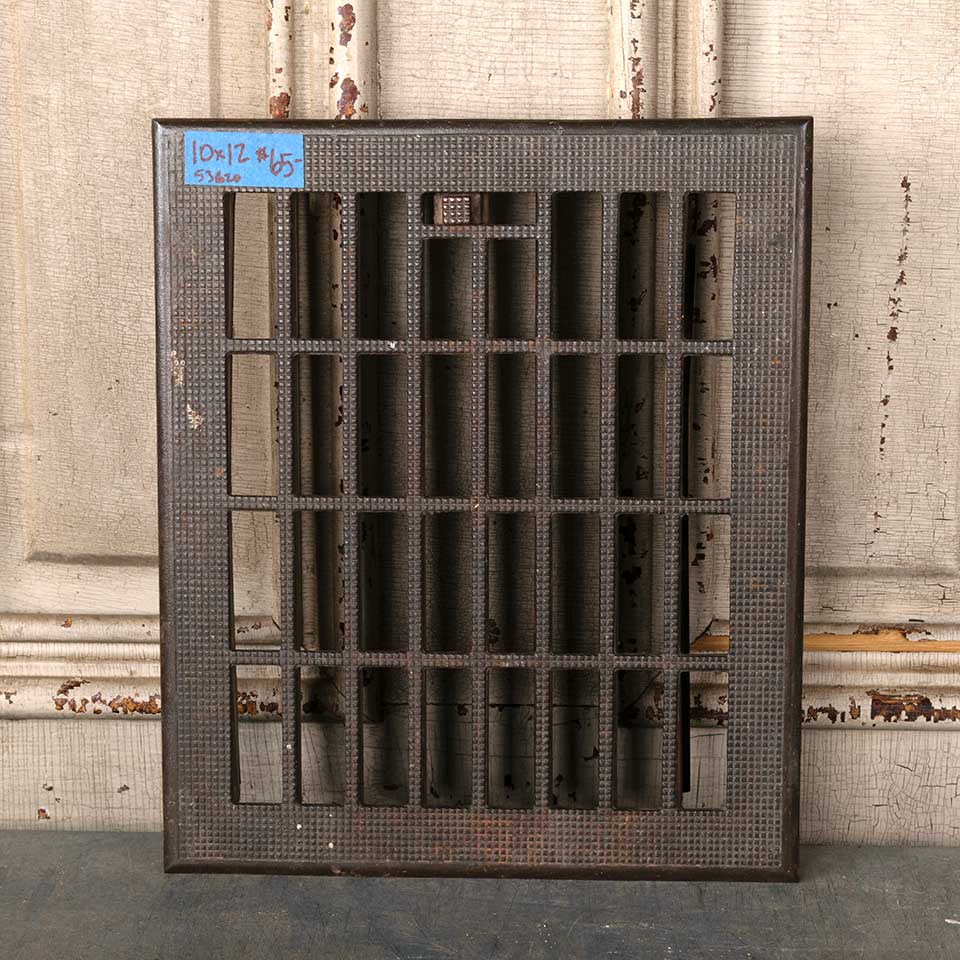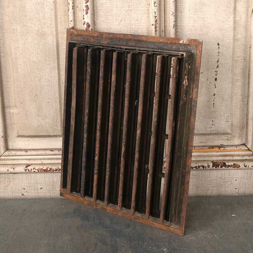 Architectural salvage antique cast iron heat grate floor vent cover with operable louvers measuring approx. 10" x 12" (insert dimensions) and 11 5/8" x 13 3/4" (overall dimensions). See photos to evaluate condition.