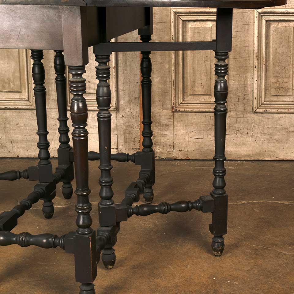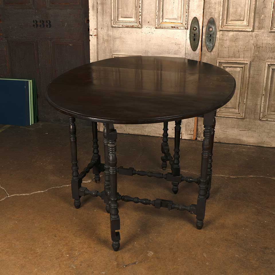 Antique wood gate leg table measuring approx. 36 1/2" x 48 1/2" x 30" tall (when open) and 36 1/2" x 17" (when the leaves are down). See photos to evaluate condition.