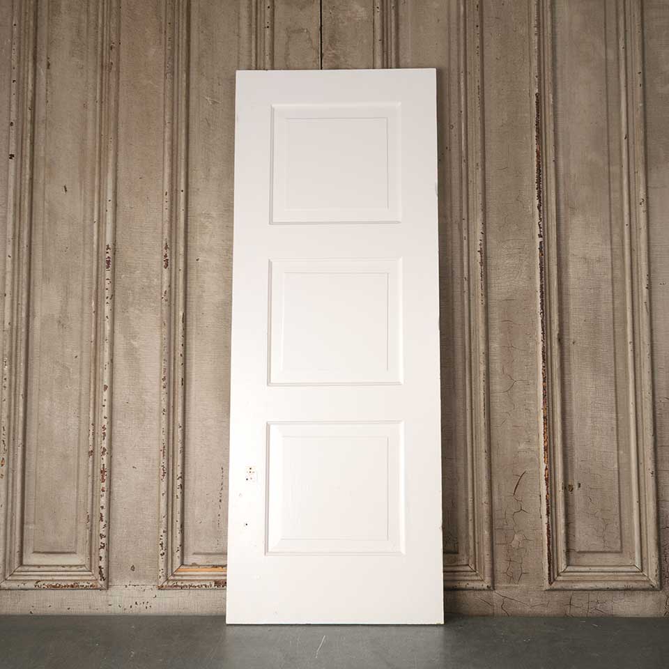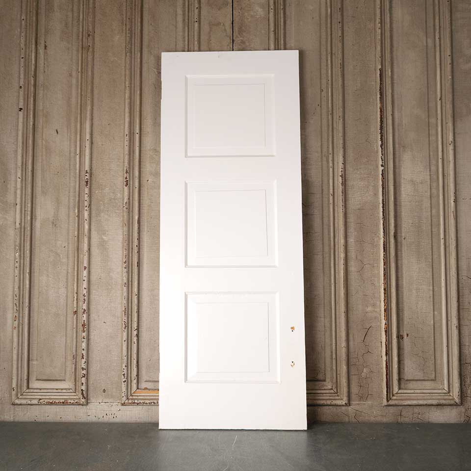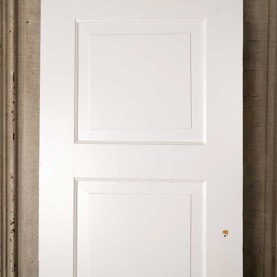 Architectural salvage antique painted wood two panel cabinet door measuring approx. 17 7/8" wide x 47 3/4" tall x 3/4" thick. Color and condition may vary.