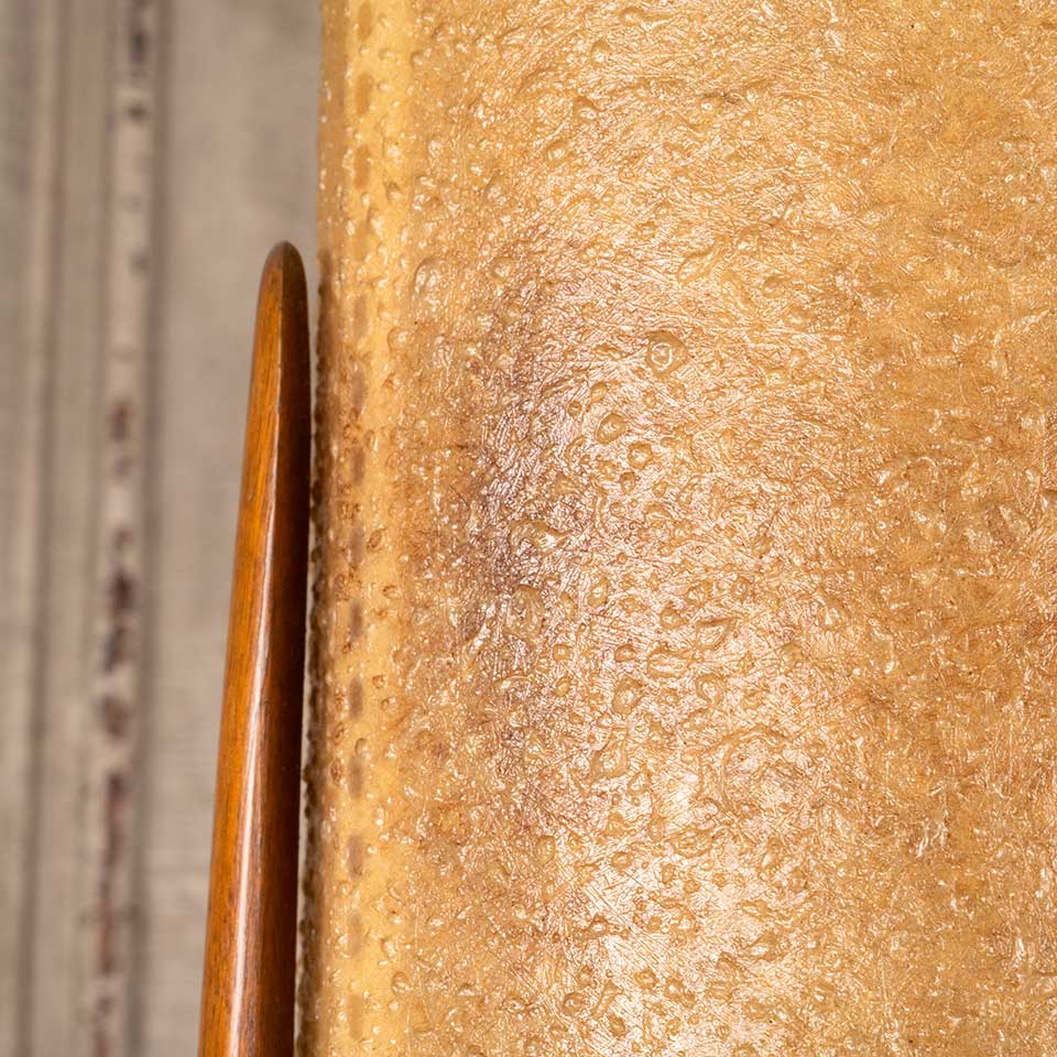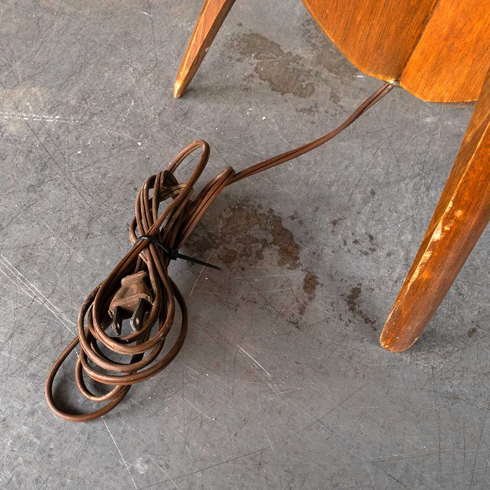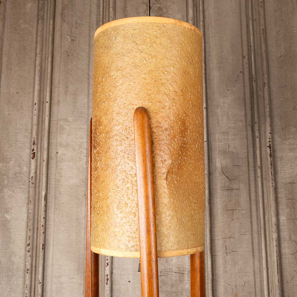 Vintage single bulb Mid Century Modern MCM Adrian Pearsall "Rocket" table lamp for Modeline measuring approx. 35 1/4" tall with a 10" diameter base and a 6 1/4" diameter lamp shade. Shade is dented and is discolored. See photos to evaluate condition.
