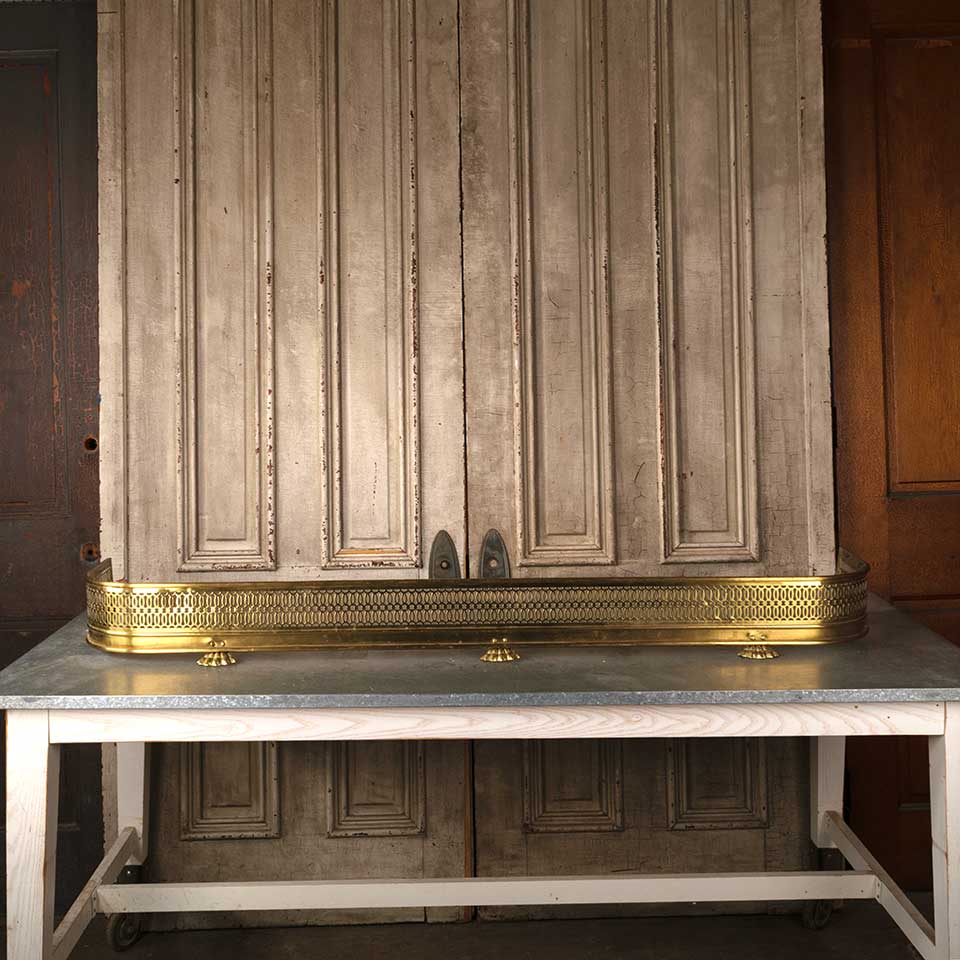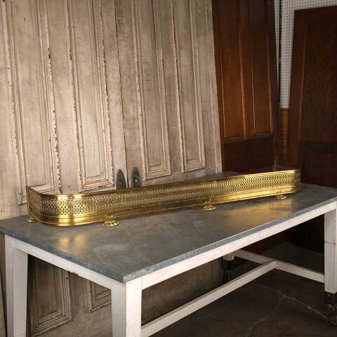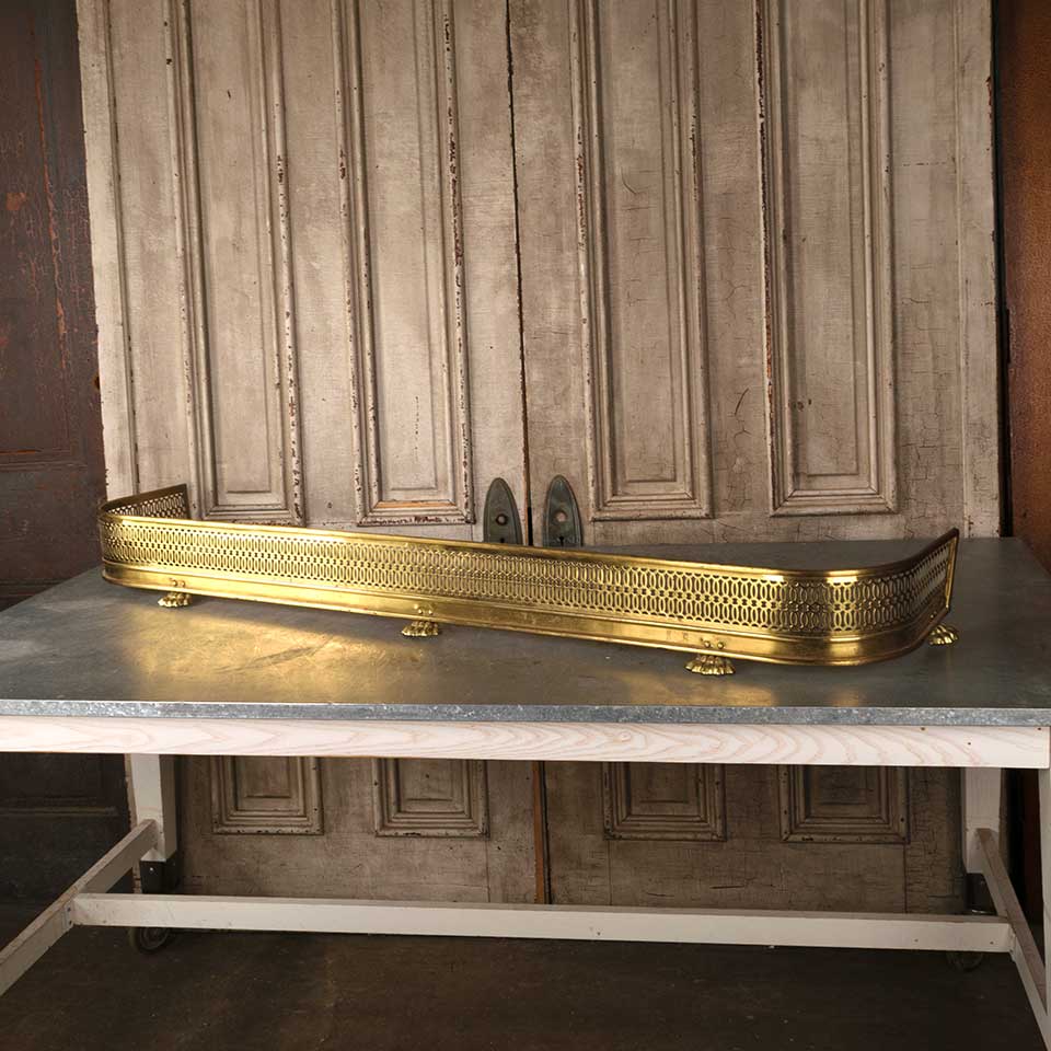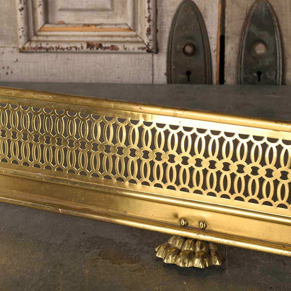 Architectural salvage antique brass fireplace fender with claw feet measuring approx. 62 3/8" wide x 6" tall x 13" front to back. See photos to evaluate condition.
